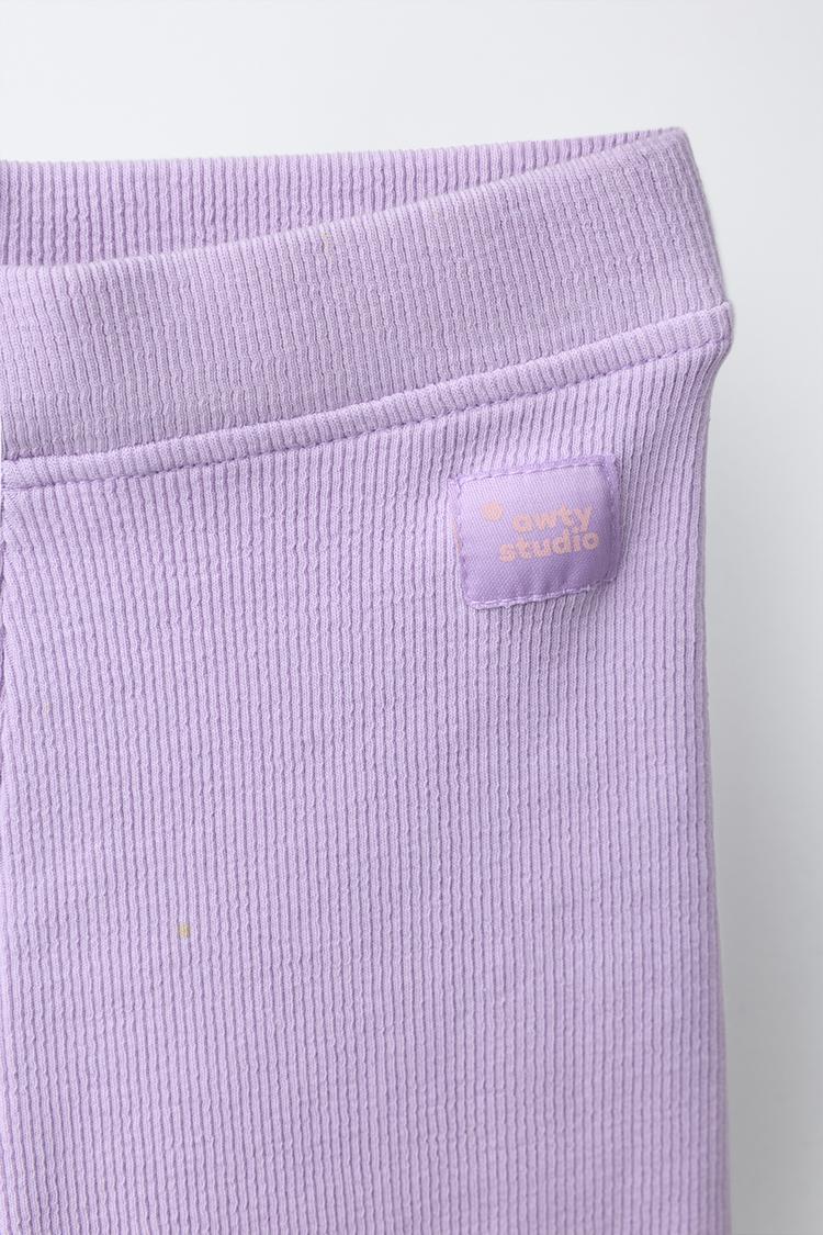 Легинсы в рубчик типа велосипедки с эластичным поясом. Этикетка на передней части.