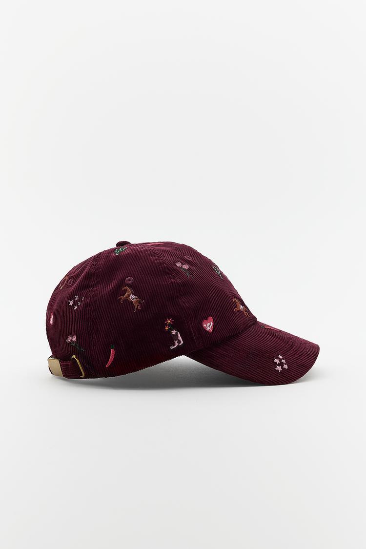 ZARA ВЕЛЬВЕТОВАЯ КЕПКА С ВЫШИВКОЙ, БУРГУНДИ