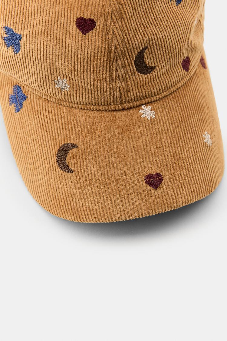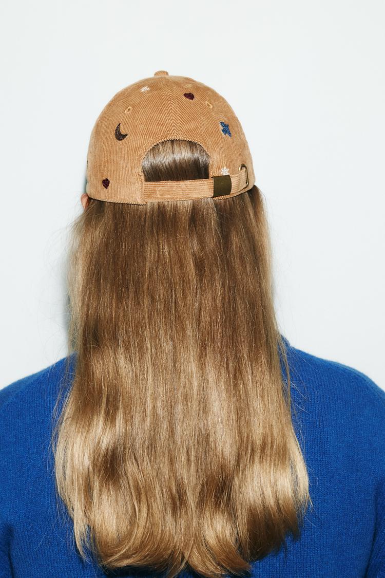 ZARA ВЕЛЬВЕТОВАЯ КЕПКА С ВЫШИВКОЙ В ВИДЕ ПТИЦ И ЛУНЫ, РЫЖЕВАТО-КОРИЧНЕВЫЙ