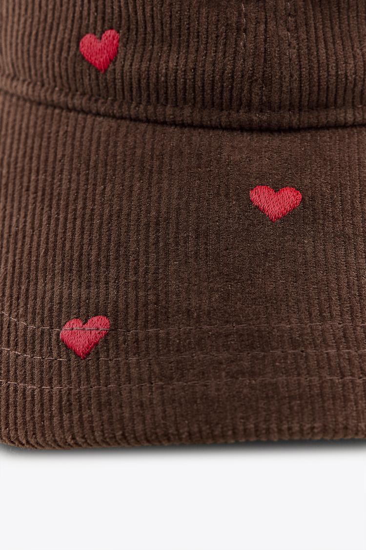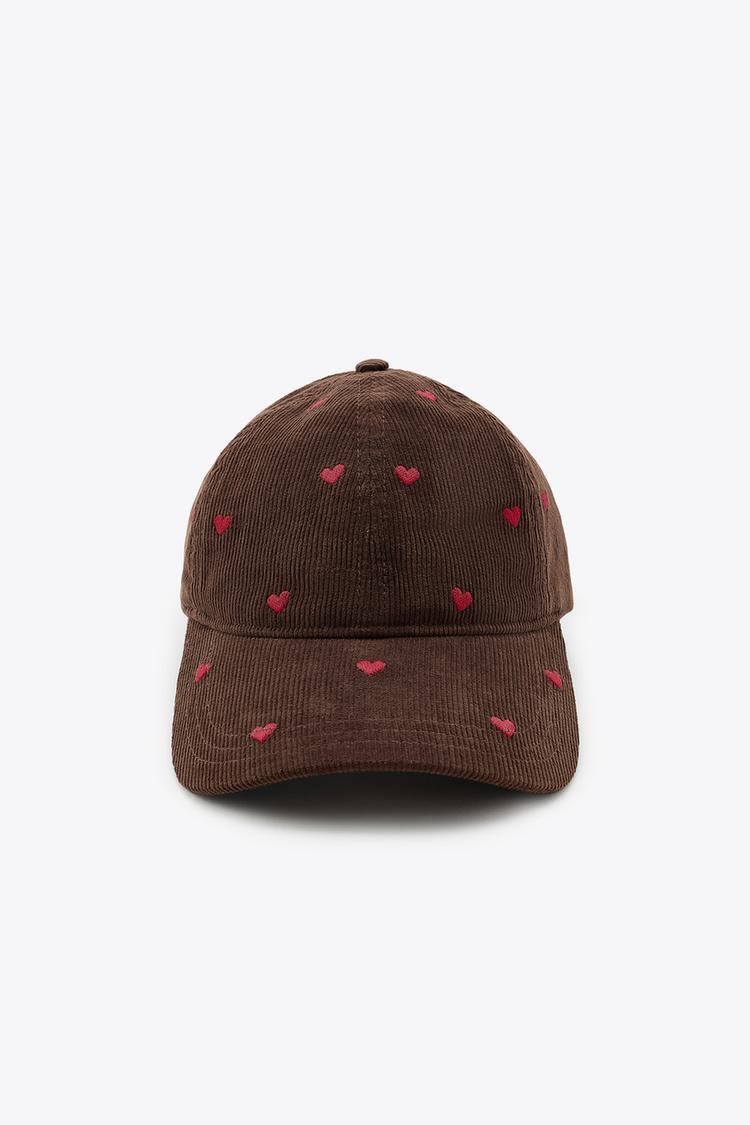 ZARA ВЕЛЬВЕТОВАЯ КЕПКА С ВЫШИВКОЙ В ВИДЕ СЕРДЕЦ, КОРИЧНЕВЫЙ