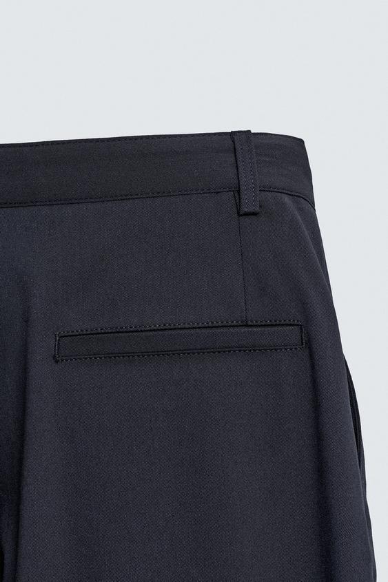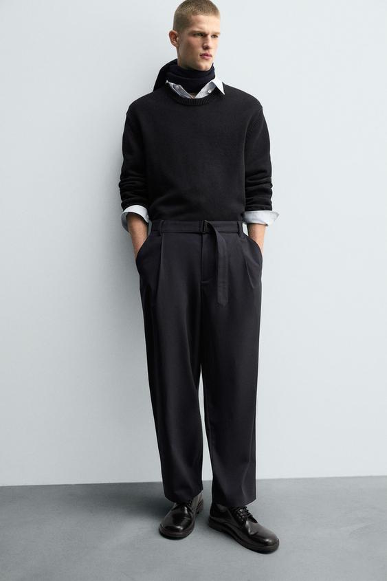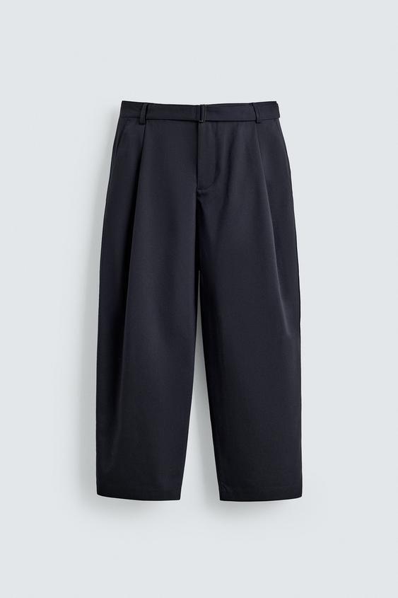 ZARA БРЮКИ RELAXED FIT С РЕМНЕМ, МОРСКОЙ СИНИЙ