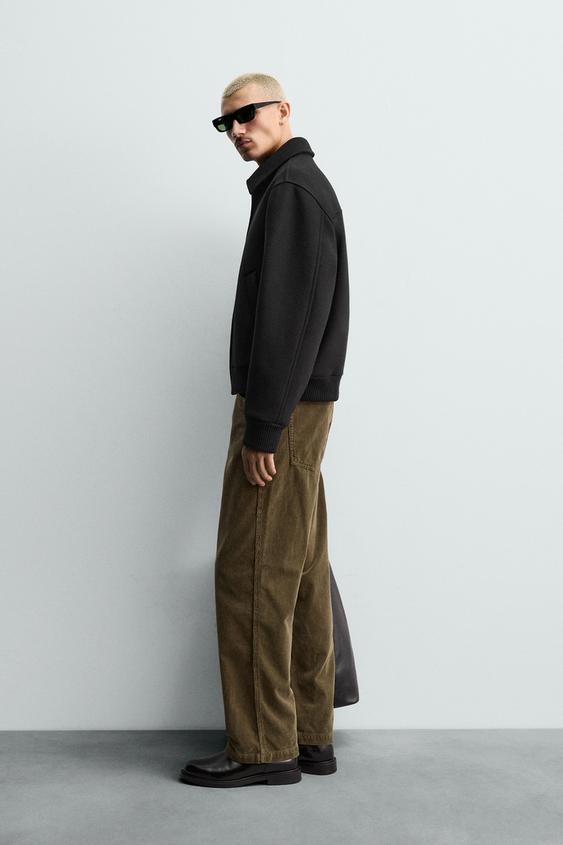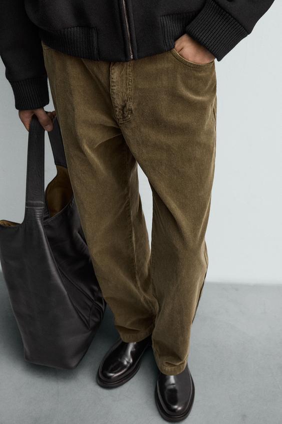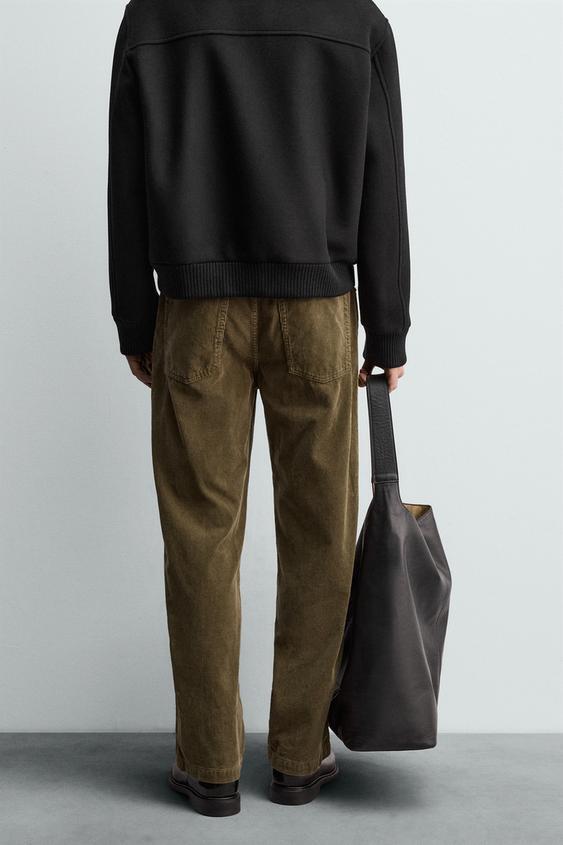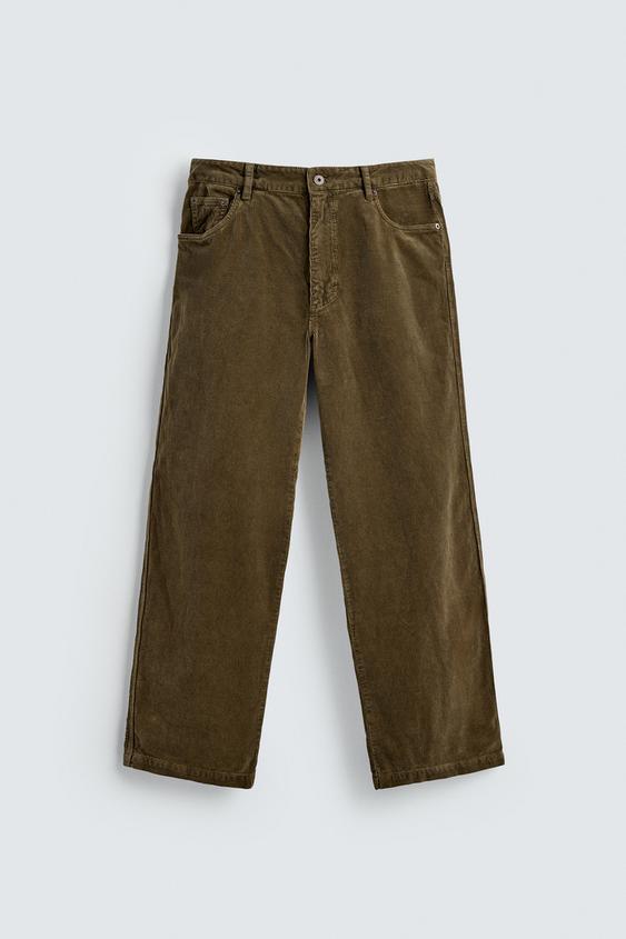 ZARA ВЕЛЬВЕТОВЫЕ БРЮКИ REGULAR FIT, ТЕМНЫЙ ХАКИ