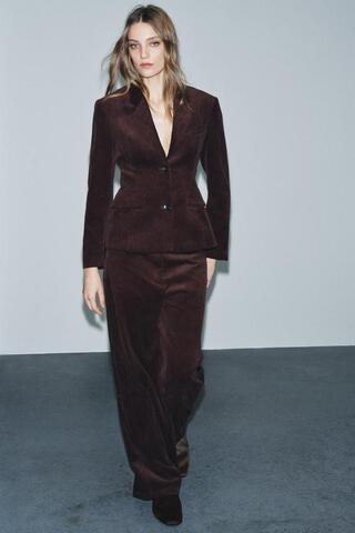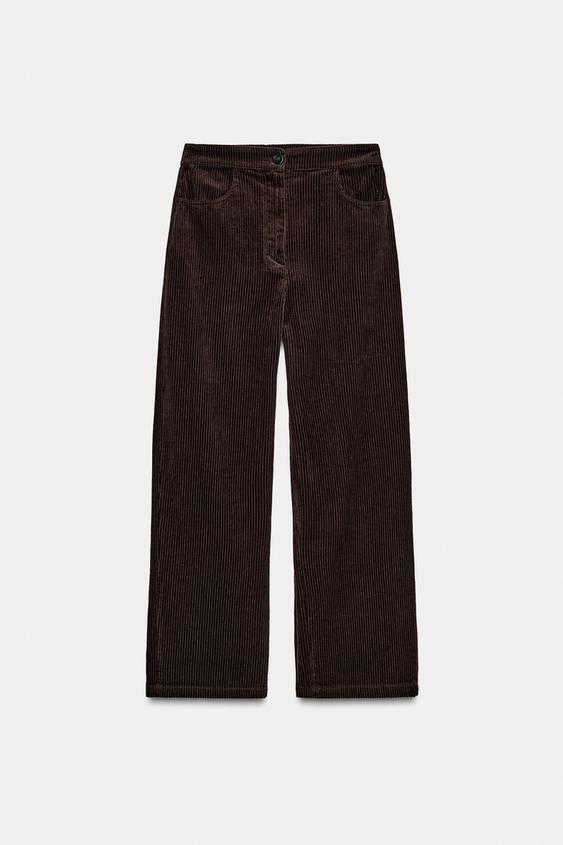 ZARA ВЕЛЬВЕТОВЫЕ БРЮКИ WIDE-LEG — ZW COLLECTION, КОРИЧНЕВЫЙ