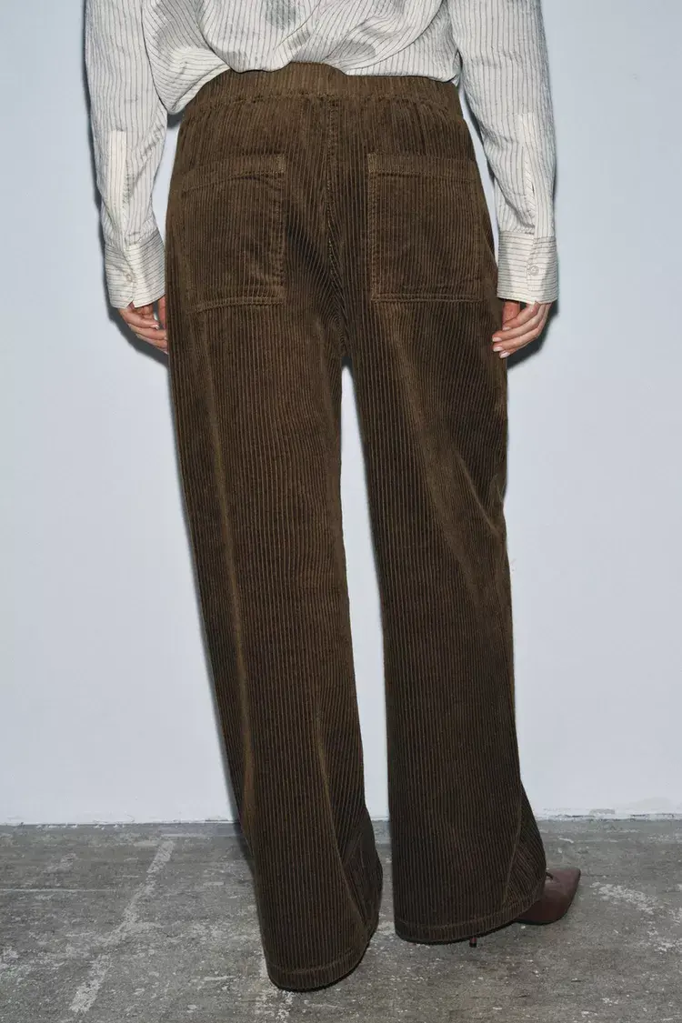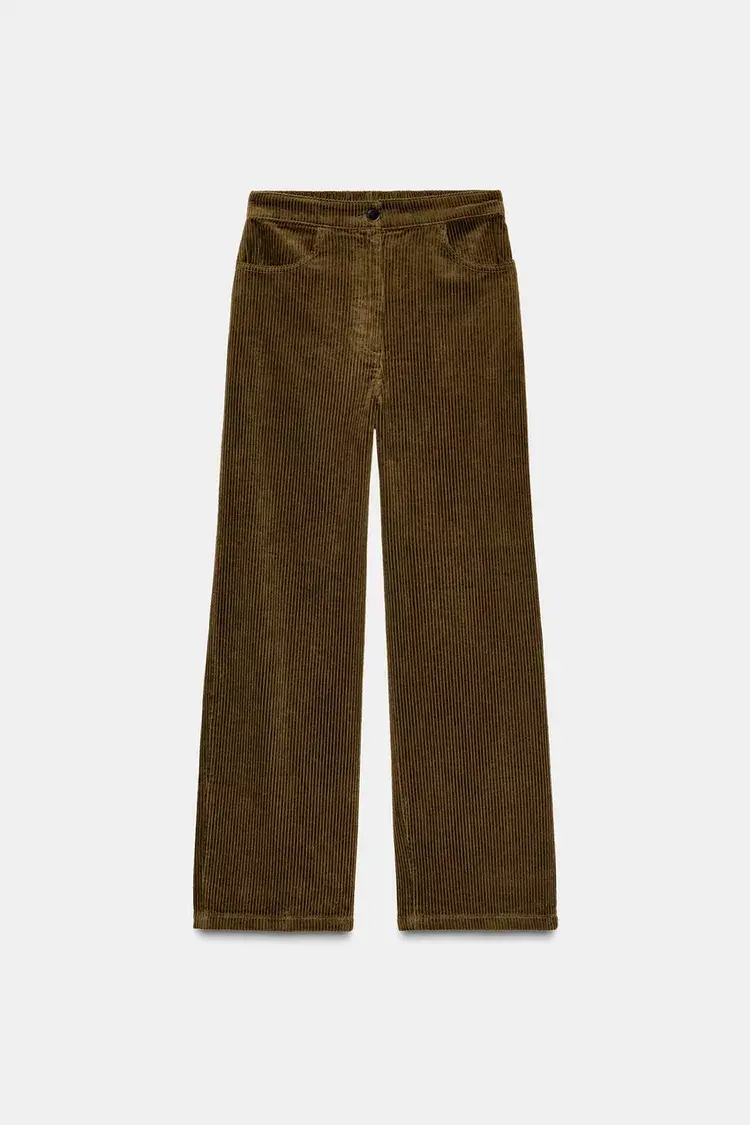 ZARA ВЕЛЬВЕТОВЫЕ БРЮКИ WIDE LEG — ZW COLLECTION, ОЛИВКОВЫЙ