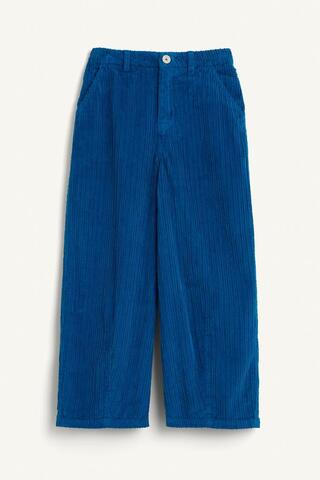 Вельветовые широкие брюки с регулируемым внутренним поясом, застежкой-молнией спереди, поясной перемычкой, передними карманами и накладными карманами сзади.