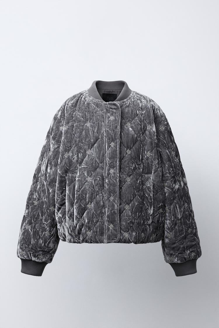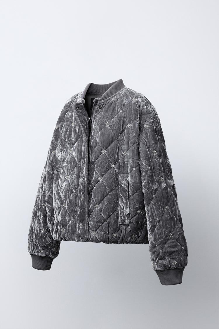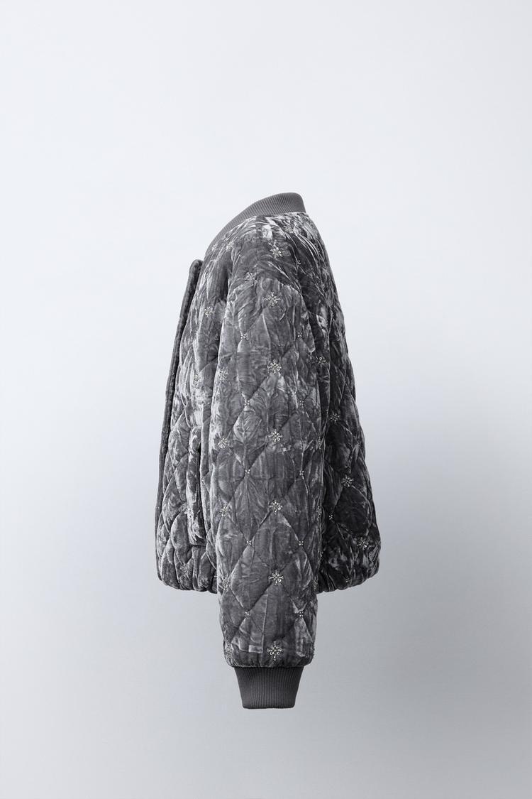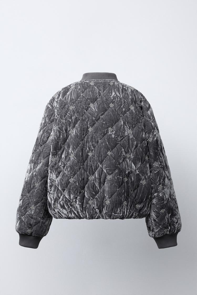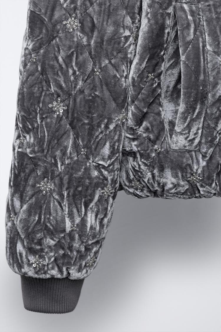 ZARA ВЕЛВЕТОВЫЙ БОМБЕР С УКРАШЕНИЯМИ, СЕРЫЙ