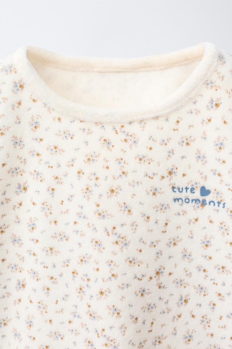 ZARA ВЕЛЮРОВАЯ ПИЖАМА С ЦВЕТАМИ, ЭКРЮ