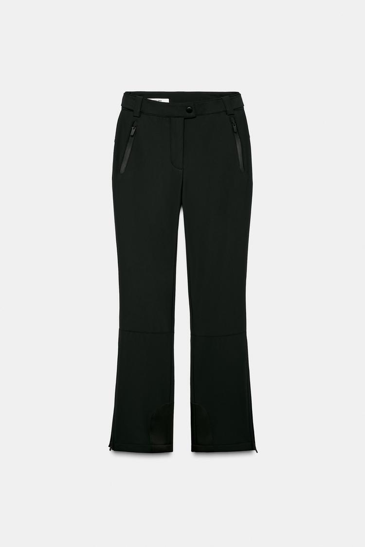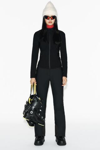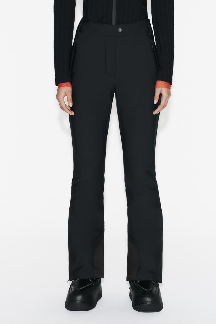 Высокая талия с регулируемыми боковыми полосами и кнопками на çıt-кату. Передние карманы на молнии. Регулируемый крой с регулируемыми штанинами на молнии и более длинным задним подолом спереди, чтобы соответствовать лыжным ботинкам. Для предотвращения трения, вызванного лыжным и сноубордическим снаряжением, на штанине пришит технический тканевый патч. Внутренняя эластичная манжета с липкой лентой и нажимной кнопкой для фиксации обуви и предотвращения попадания снега и холода. Безопасная передняя застежка на молнии и технические скользящие кнопки.