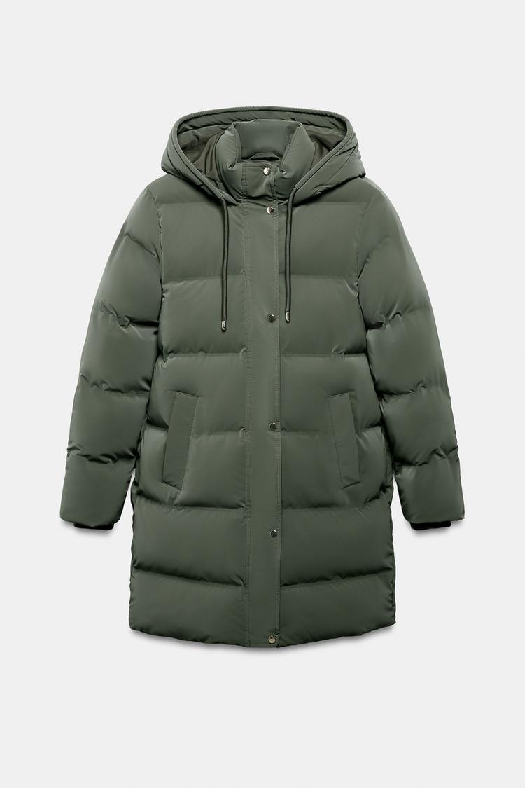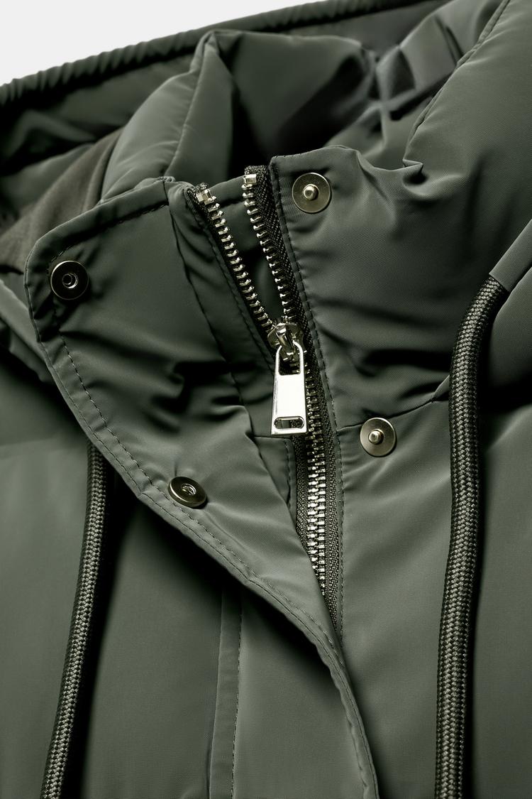 ZARA ВЕТРОЗАЩИТНЫЙ АНОРАК СРЕДНЕЙ ДЛИНЫ ИЗ ПРОРЕЗИНЕННОЙ ТКАНИ, ХАКИ
