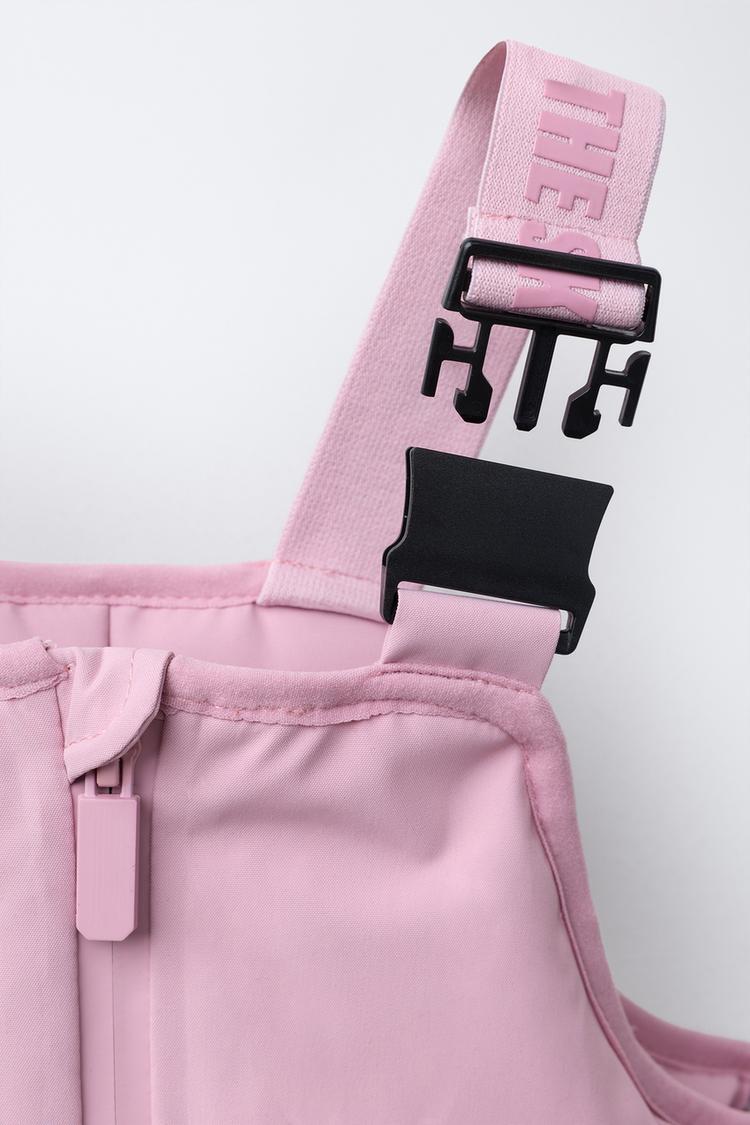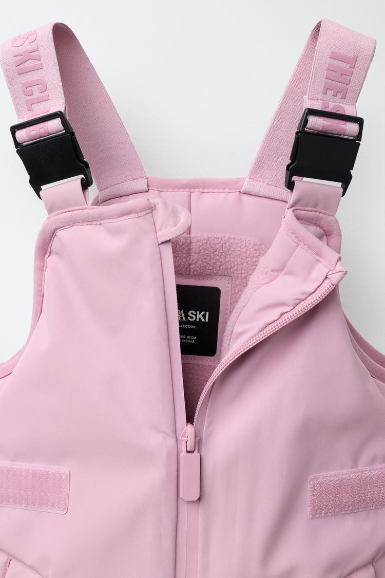 Длинный комбинезон с термоизоляцией, изготовленный из специальной водоотталкивающей и ветрозащитной ткани для холодной погоды. Регулируемые эластичные лямки с плоским воротником и пряжкой. Передняя застежка на термоизолированной молнии. Задняя часть с эластичной лентой и регулируемая липучкой по бокам. Скрытые передние карманы, теплоизоляция на молнии и внутренняя часть с флисовой подкладкой. Боковые штанины с застежкой-молнией и внутренняя резиновая манжета, чтобы предотвратить попадание снега и холода внутрь обуви. Детали светоотражающей ленты на штанинах. Внутренняя подкладка из флиса.