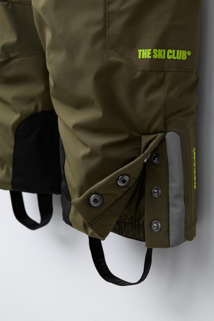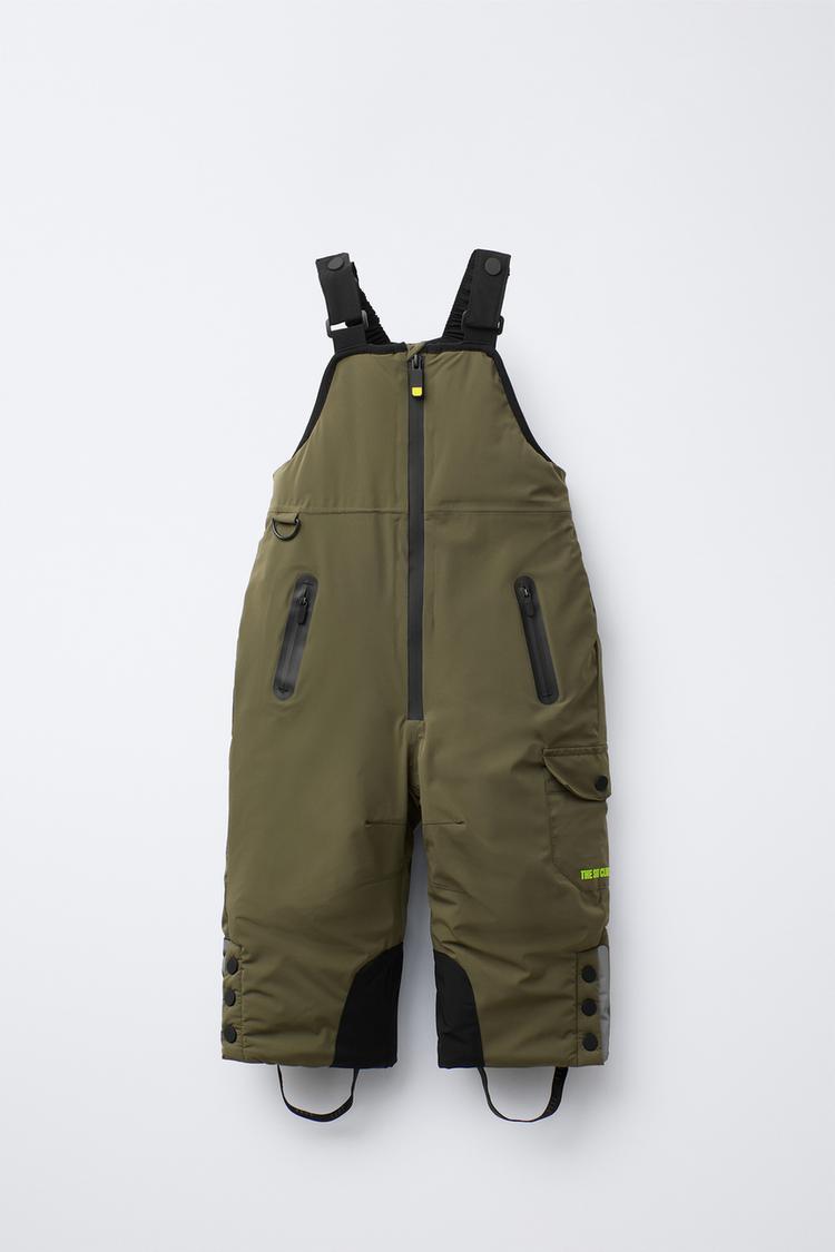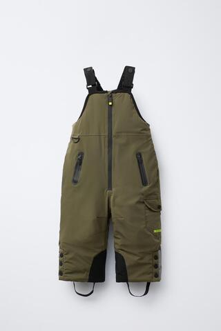 Длинный комбинезон с термоизоляцией, изготовленный из специальной водонепроницаемой и ветрозащитной ткани, идеально подходит для холодной погоды. Регулируемые эластичные бретели с плоским воротником и кнопками. Передняя молния с термозастежкой. Задняя часть с эластичной деталью. Передний накладной карман с застежкой-молнией, закрытым термозастежкой, и подкладкой из флиса внутри, боковые карманы с клапанами и застежкой-пуговицей. Боковые застежки-молнии и эластичные внутренние манжеты, которые можно заправить в обувь, чтобы предотвратить попадание снега и холода. Нижняя часть имеет детали из светоотражающей ленты и текстурированную отделку. Внутри флисовая подкладка.