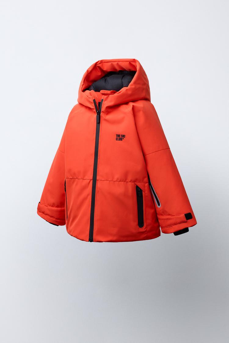 Пуховик с капюшоном и длинными рукавами, регулируемыми манжетами с липучкой и внутренними манжетами с отверстиями для большого пальца. Теплоизолированный карман на молнии для ски-пасса на рукаве. Теплоизолированная передняя молния. Передние карманы на термоизолированной молнии и флисовая подкладка. Внутренняя снеговая юбка и резиновая подкладка с регулируемым передним упором. Подкладка из флиса. Детали светоотражающей ленты сзади и печатное слово спереди.