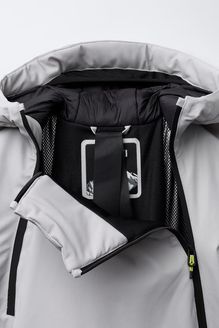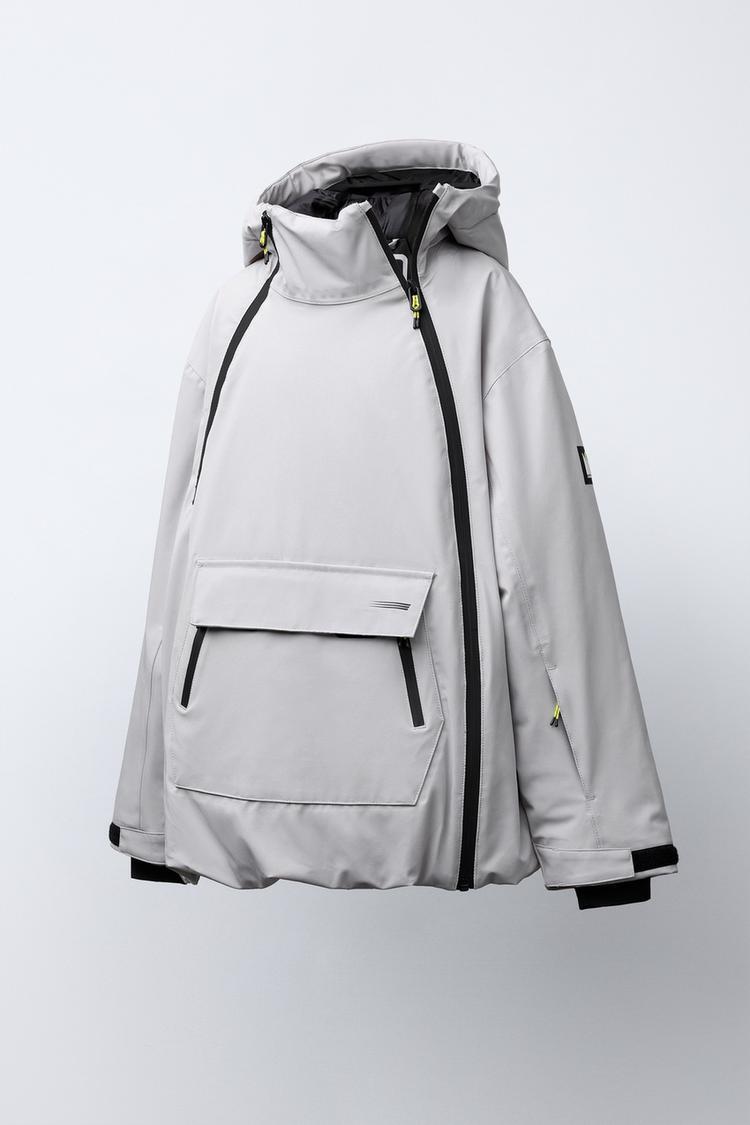 Двуслойная куртка типа кенгуру из ветро- и водонепроницаемой ткани с высотой столба воды до 1500 мм, внешняя часть которой сочетает в себе мембрану, предотвращающую попадание воды и воздуха, а также обеспечивающую воздухопроницаемость. Основные теплозащитные швы, повышающие уровень защиты одежды от снега и дождя. Оснащен технологией RECCO®*, облегчающей поиск спасателями в случае аварии, схода лавины или потери в труднодоступном районе.