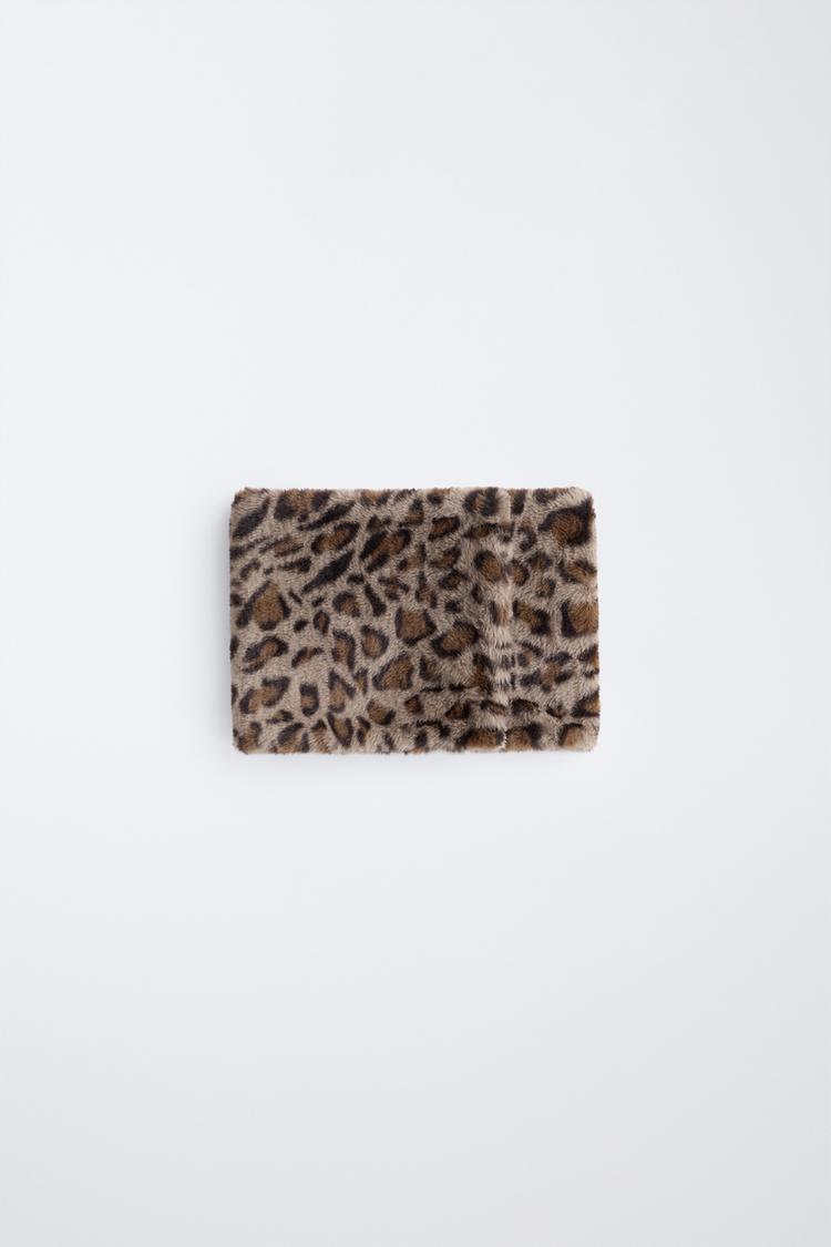 ZARA ВОРОТНИК ИЗ ИСКУССТВЕННОГО МЕХА С АНИМАЛИСТИЧЕСКИМ ПРИНТОМ, КОРИЧНЕВЫЙ