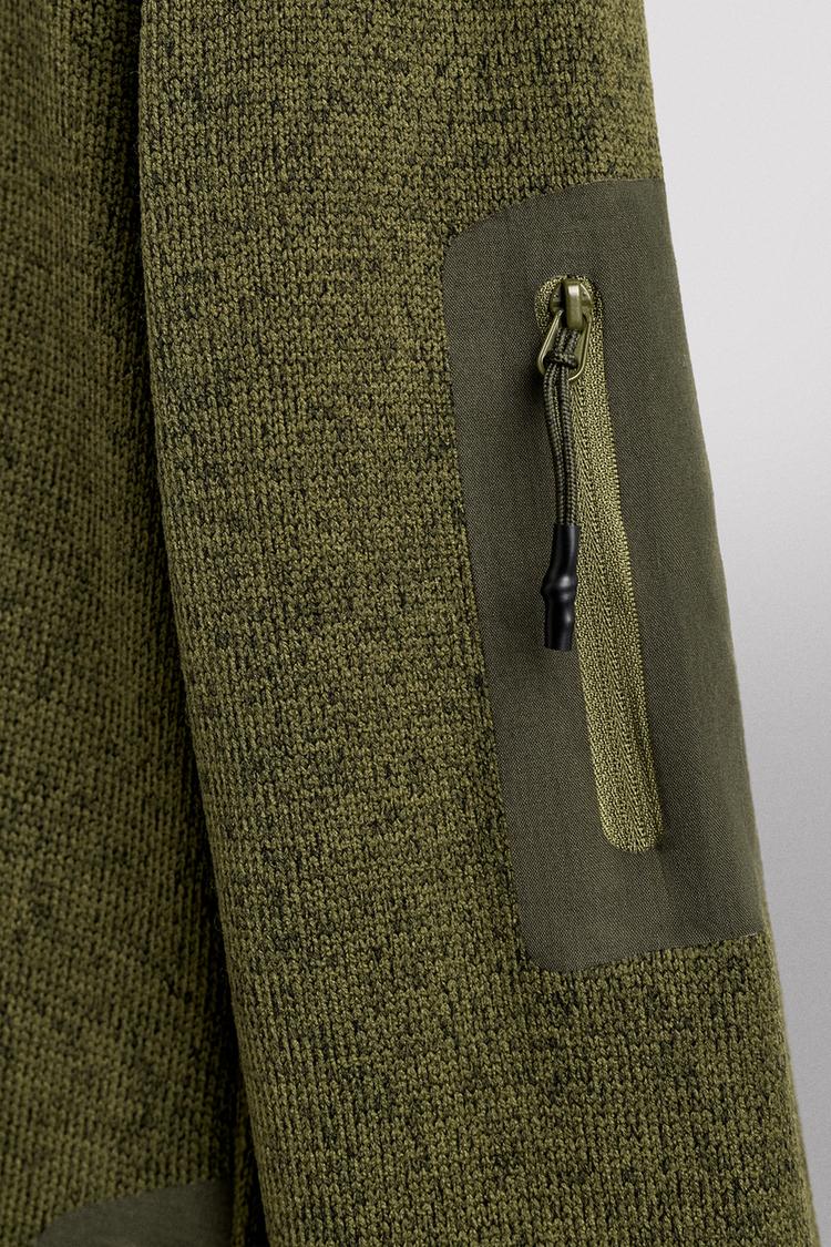 ZARA ВЯЗАНАЯ КУРТКА С ФЛИСОМ, ЗЕЛЕНЫЙ