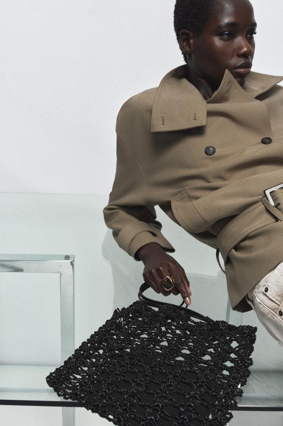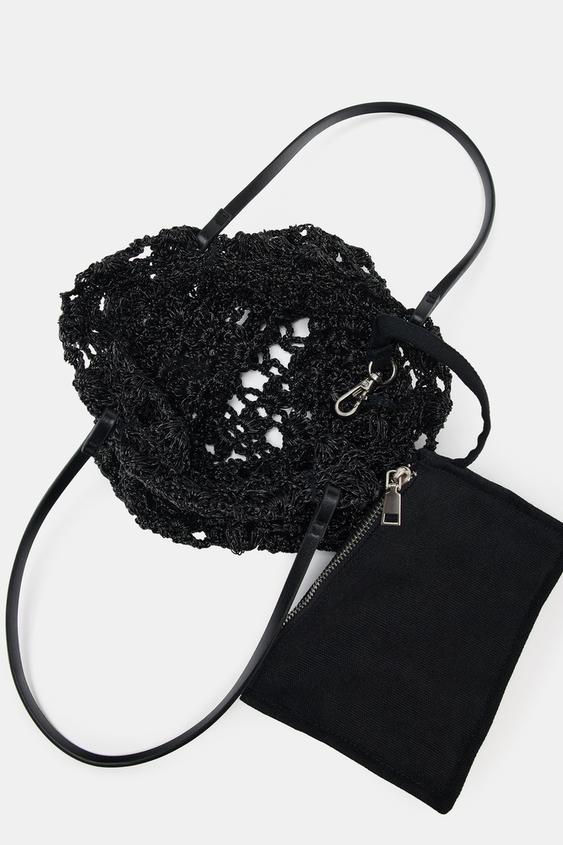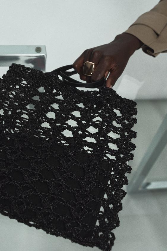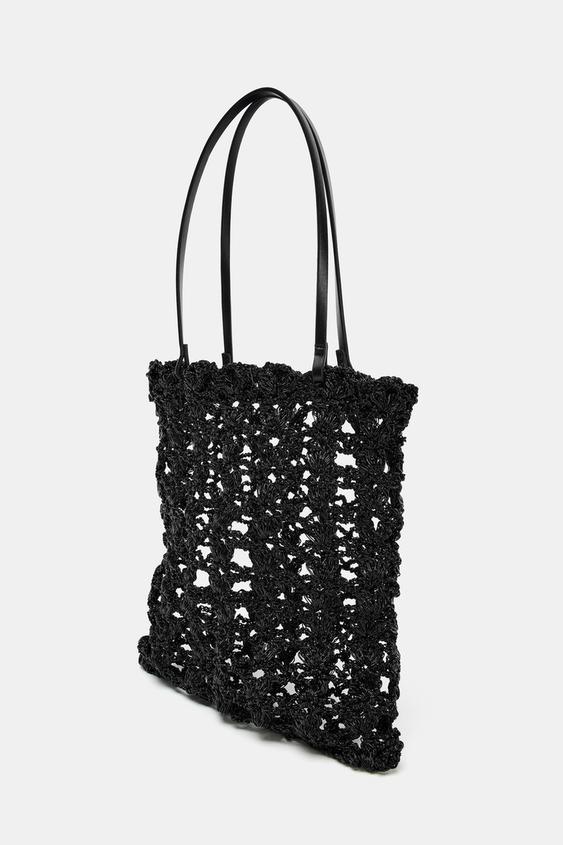 ZARA ВЯЗАНАЯ МИНИ-СУМКА-ШОПЕР, ЧЕРНЫЙ