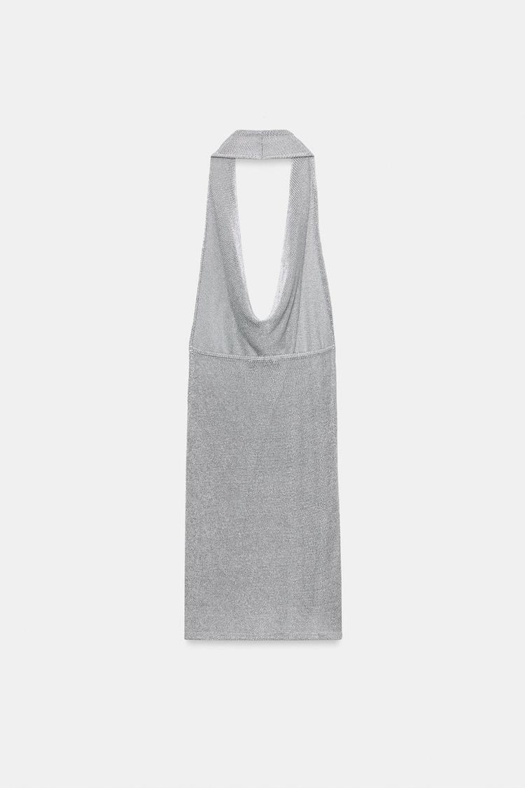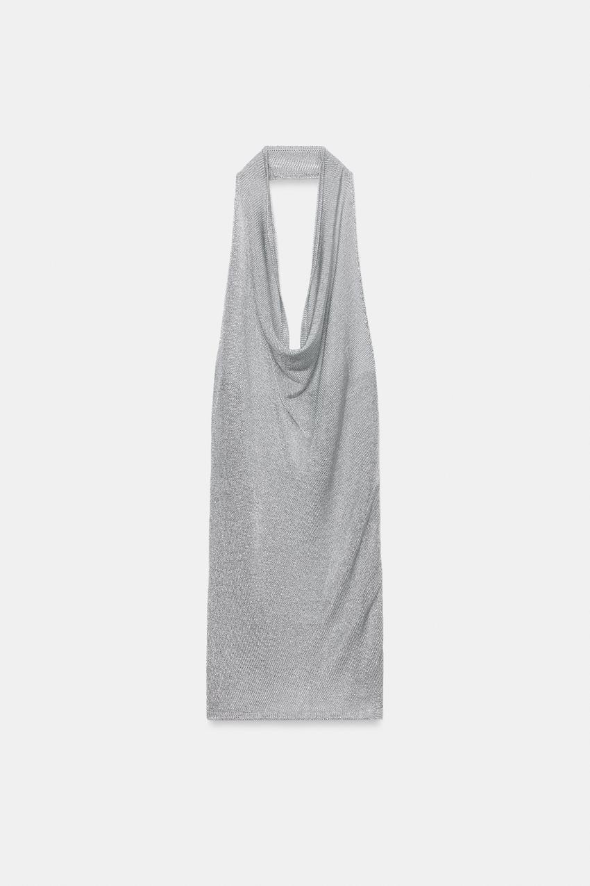 ZARA ВЯЗАНОЕ ПЛАТЬЕ ХАЛТЕР С ЛЮРЕКСОМ, СЕРЕБРИСТЫЙ