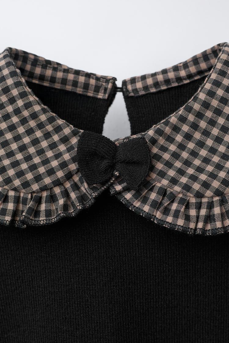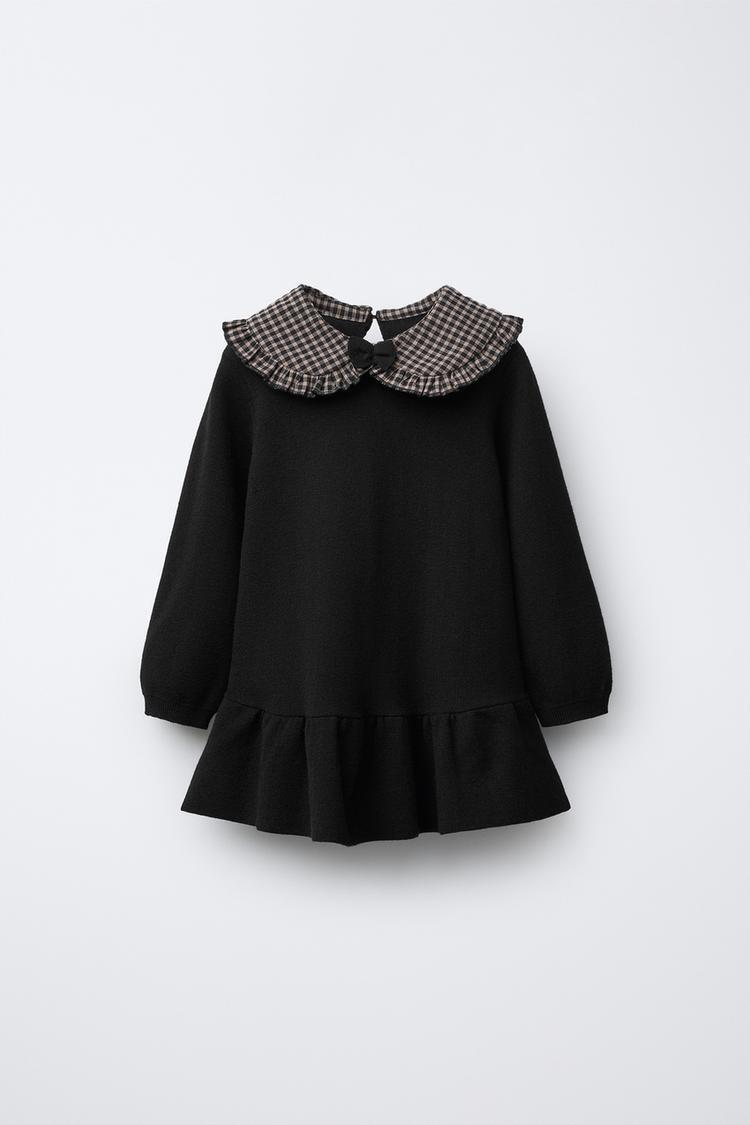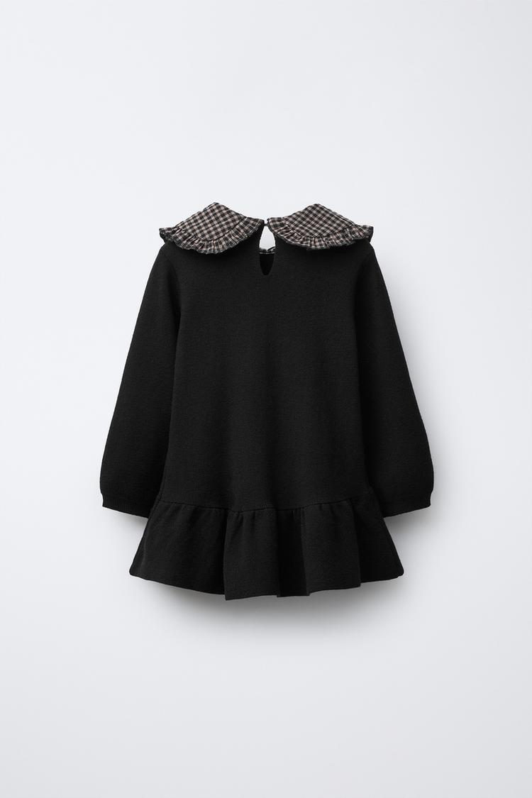 ZARA ВЯЗАНОЕ ПЛАТЬЕ С ВОРОТНИКОМ В КЛЕТКУ ВИШИ, ЧЕРНЫЙ