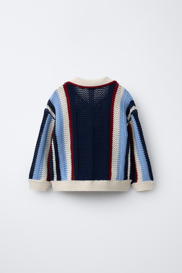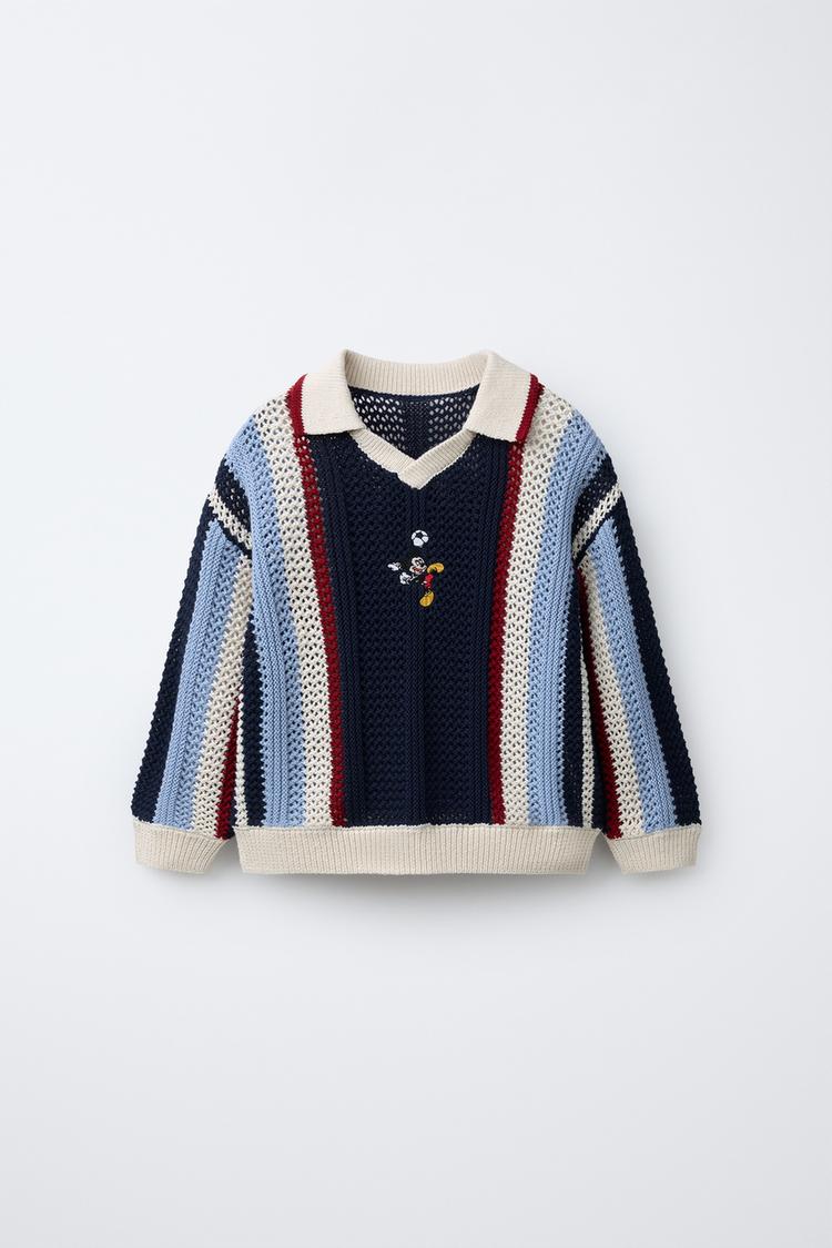Вязаное поло с воротником и длинными рукавами. Полоска и вышивка МИККИ МАУС © DISNEY.