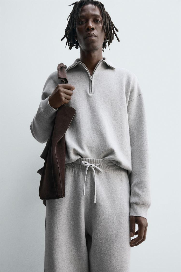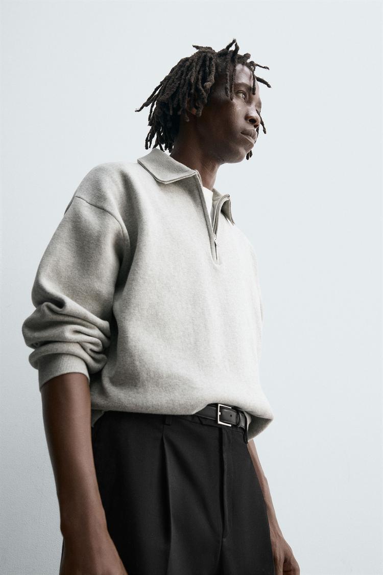 ZARA ВЯЗАНОЕ ПОЛО С ВОРОТНИКОМ НА МОЛНИИ, СЕРЫЙ МЕЛАНЖ