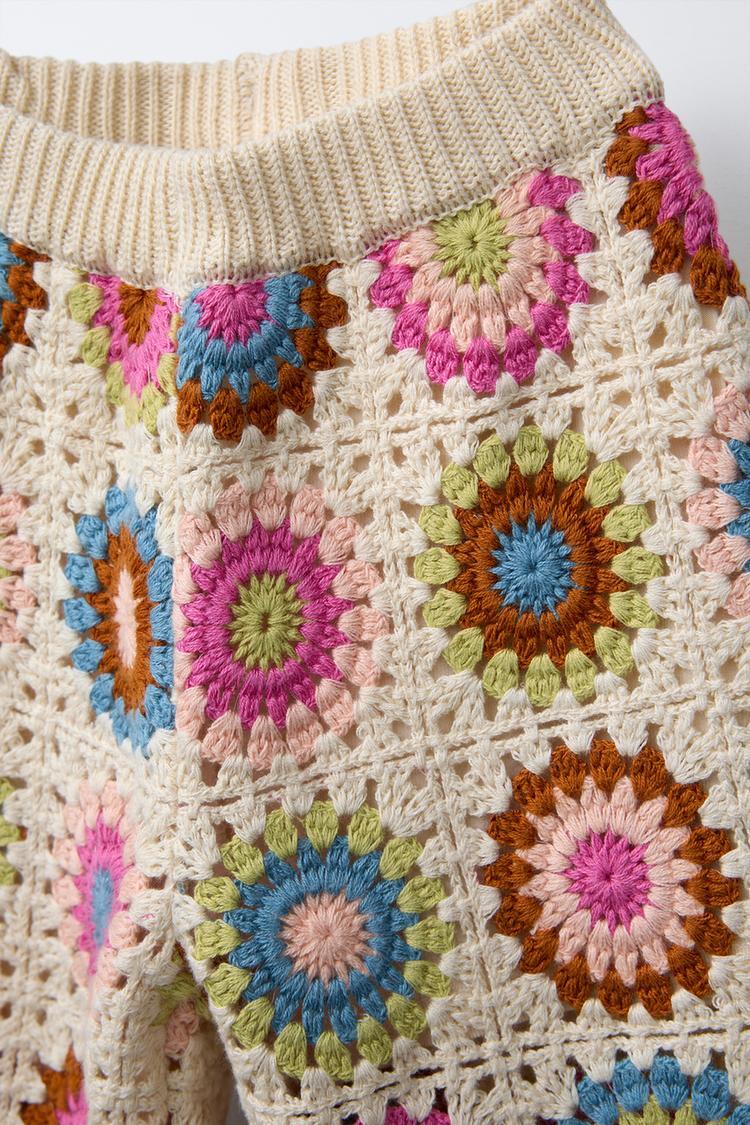 ZARA ВЯЗАНЫЕ БРЮКИ ИЗ КРУЖЕВА КРОШЕ, РАЗНОЦВЕТНЫЙ