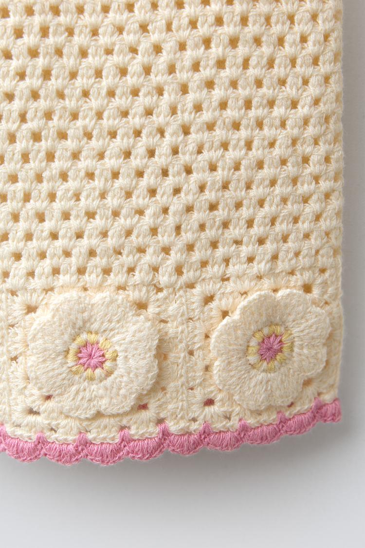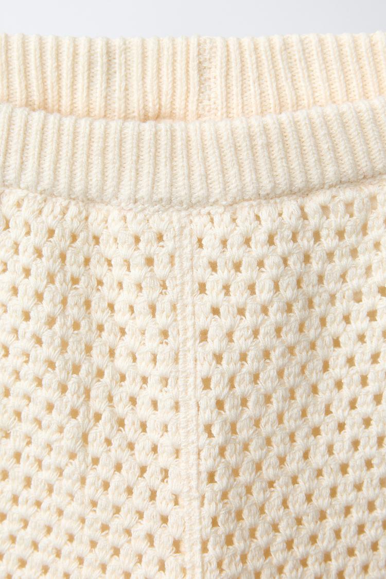 ZARA ВЯЗАНЫЕ КРЮЧКОМ БРЮКИ-КЮЛОТЫ С ЦВЕТАМИ, ЭКРЮ