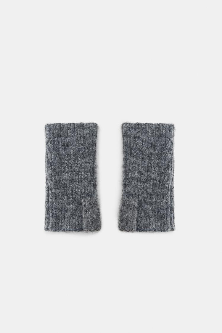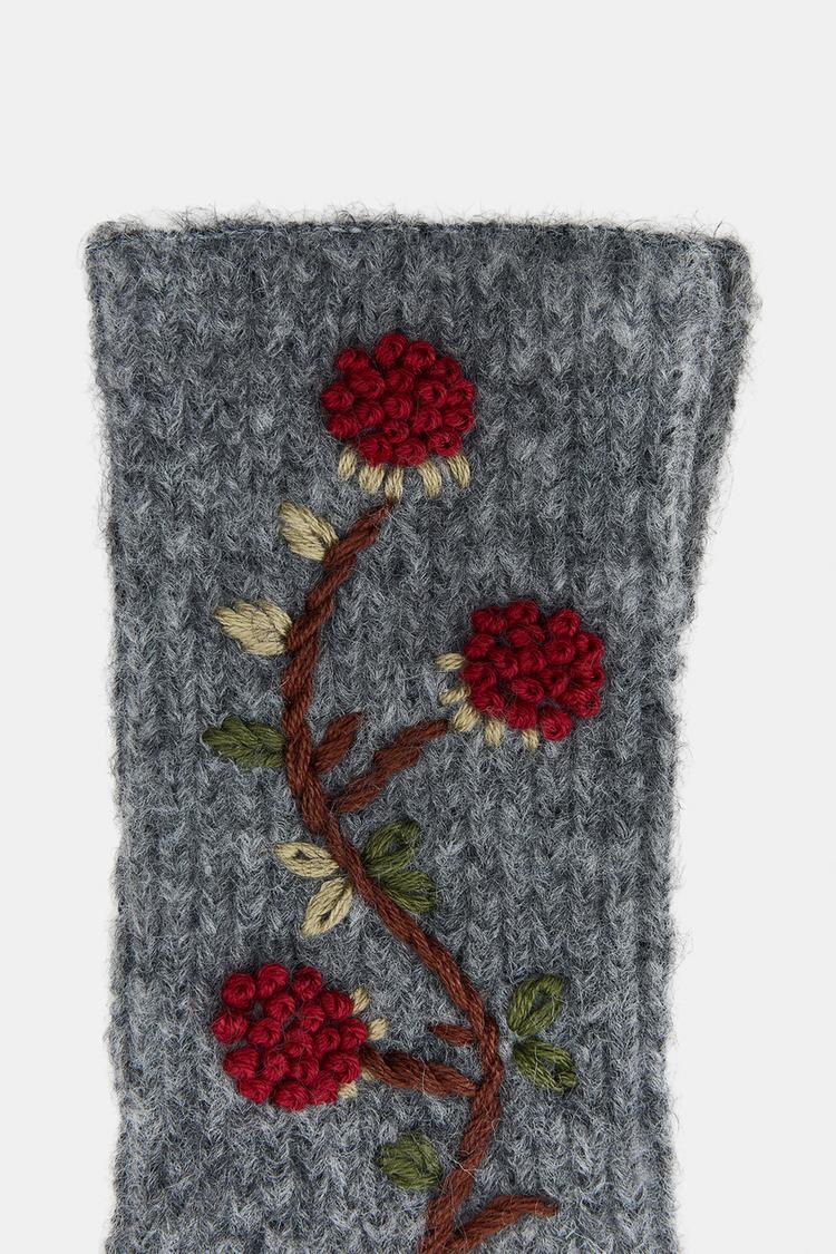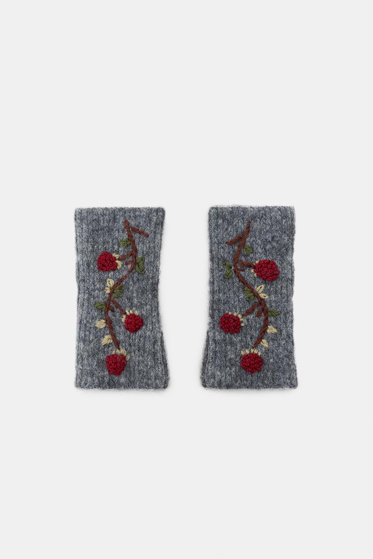 ZARA ВЯЗАНЫЕ МИТЕНКИ С ВЫШИТЫМИ ЦВЕТАМИ, СЕРЫЙ
