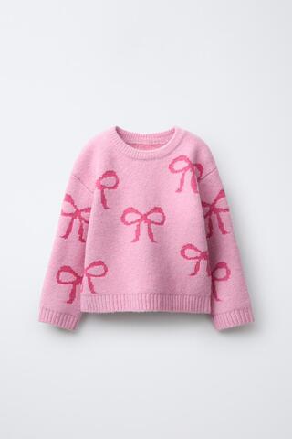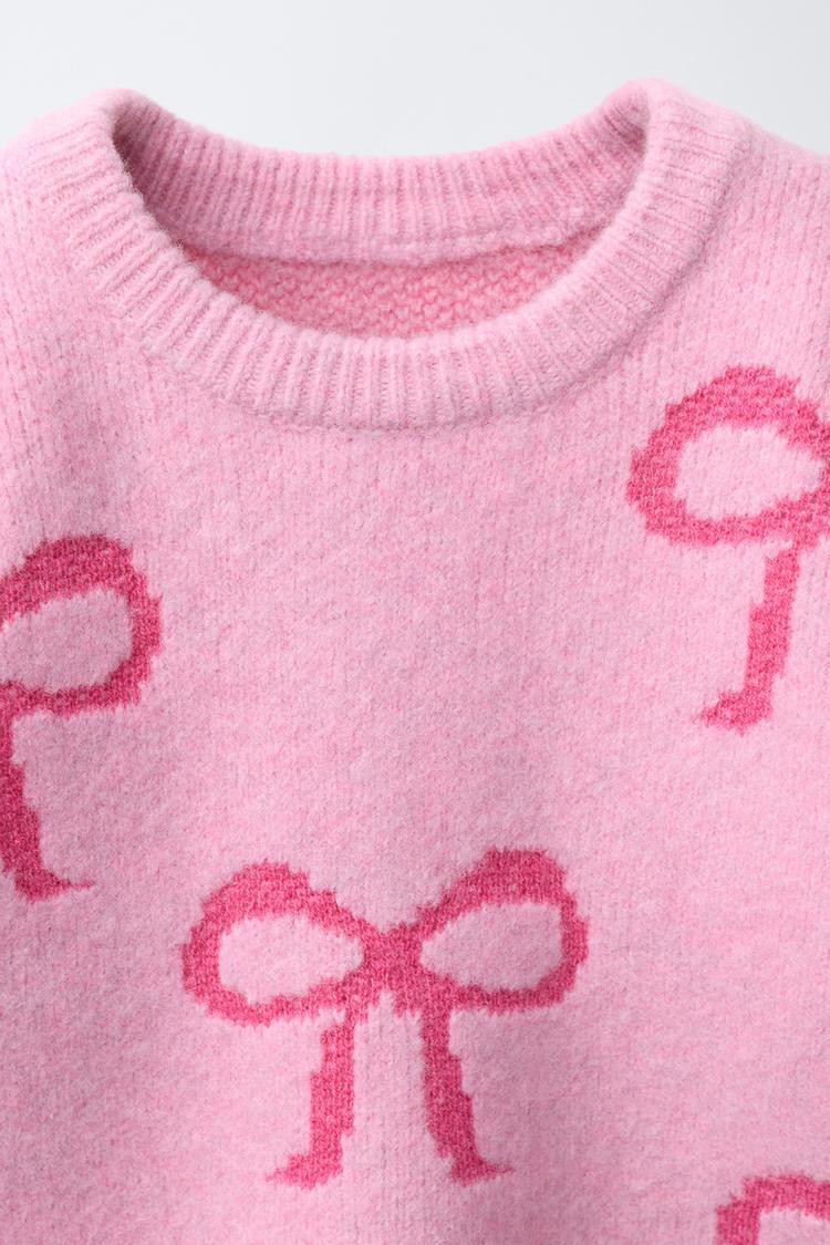 ZARA ВЯЗАНЫЙ ДЖЕМПЕР «БАНТЫ», РОЗОВЫЙ