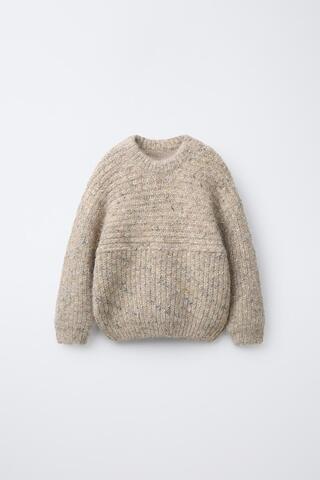 ZARA ВЯЗАНЫЙ ДЖЕМПЕР С ШЕРСТЬЮ, БЕЖЕВЫЙ МЕЛАНЖ