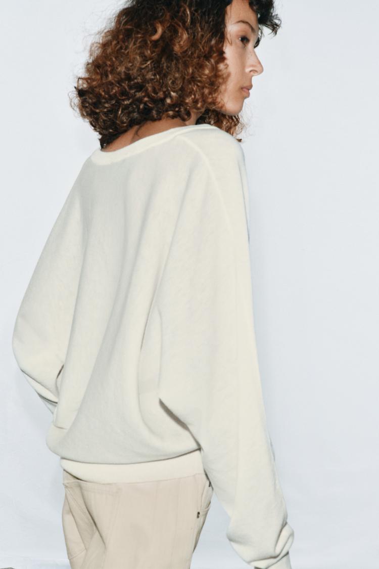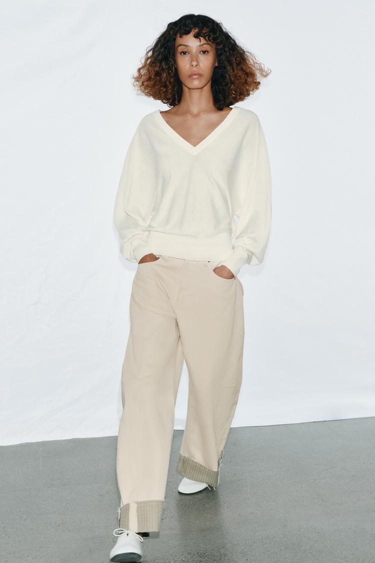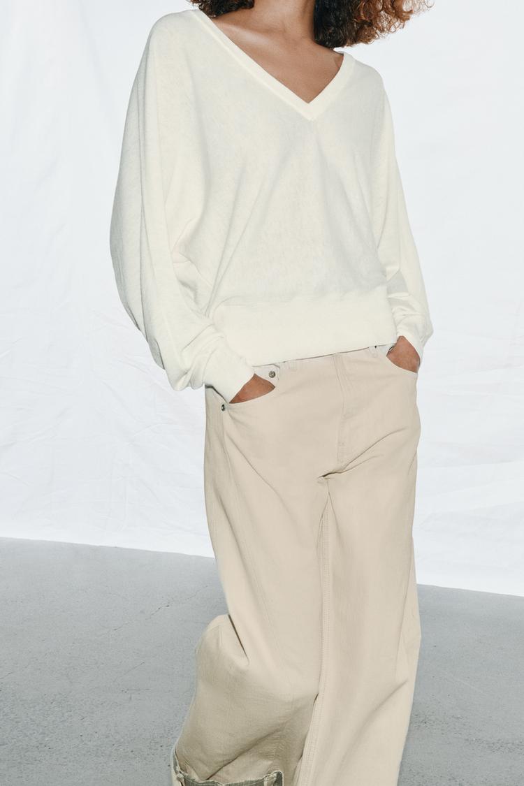 ZARA ВЯЗАНЫЙ ДЖЕМПЕР С V-ОБРАЗНЫМ ВЫРЕЗОМ, БЕЛЫЙ