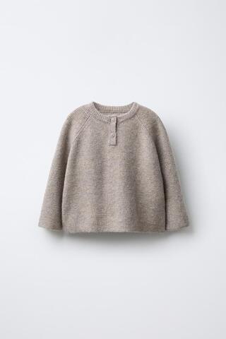 ZARA ВЯЗАНЫЙ ДЖЕМПЕР С ВОРОТНИКОМ НА ПУГОВИЦАХ, СВЕТЛО-БЕЖЕВЫЙ