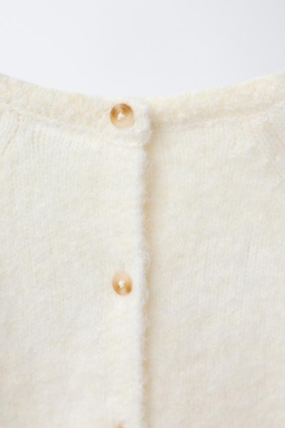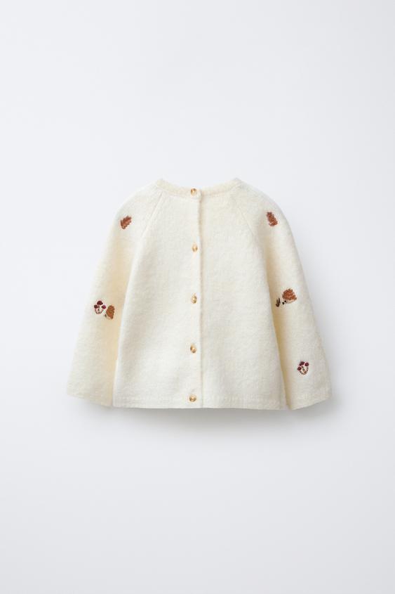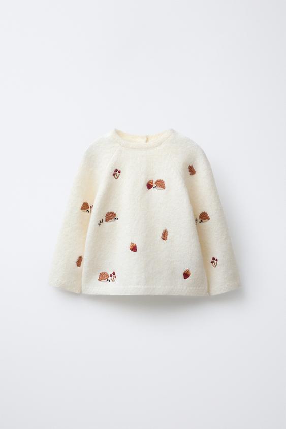 ZARA ВЯЗАНЫЙ ДЖЕМПЕР С ВЫШИТЫМИ ЕЖАМИ, ЭКРЮ