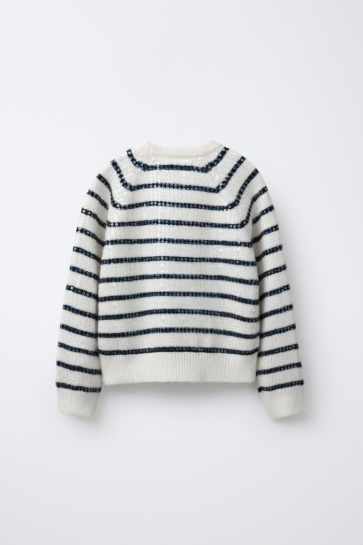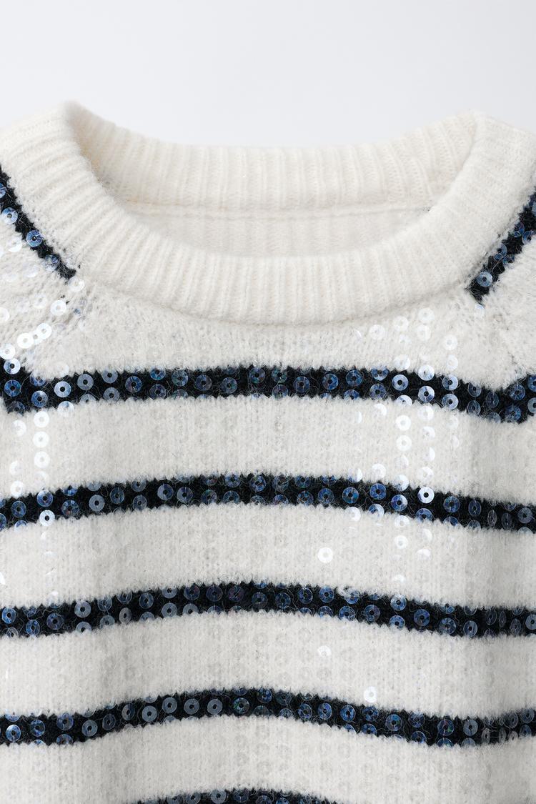 ZARA ВЯЗАНЫЙ ДЖЕМПЕР В ПОЛОСКУ С ПАЙЕТКАМИ, ПОЛОСКИ