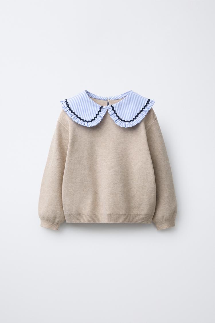 ZARA ВЯЗАНЫЙ ДЖЕМПЕР В ПОЛОСКУ С ВОРОТНИКОМ БОБО, БЕЖЕВЫЙ