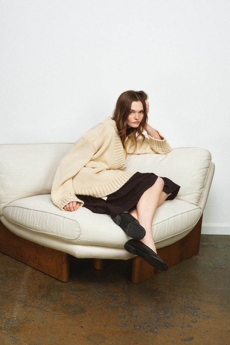 ZARА ВЯЗАНЫЙ КАРДИГАН-КИМОНО С ЗАПÁХОМ, ЭКРЮ