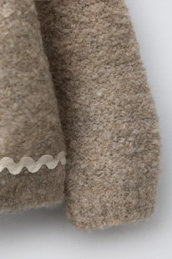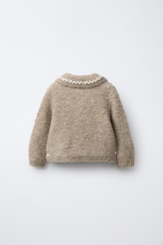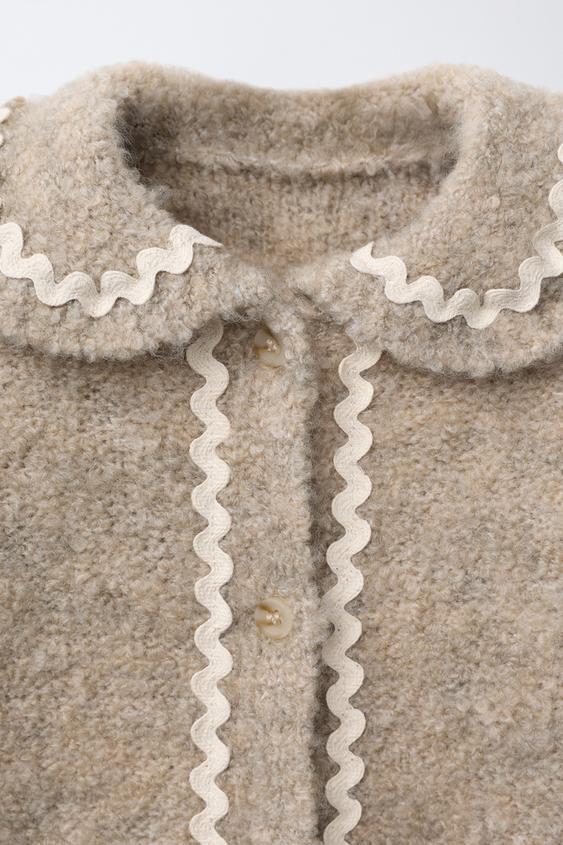ZARA ВЯЗАНЫЙ КАРДИГАН С ВОЛАНОМ, СВЕТЛО-БЕЖЕВЫЙ