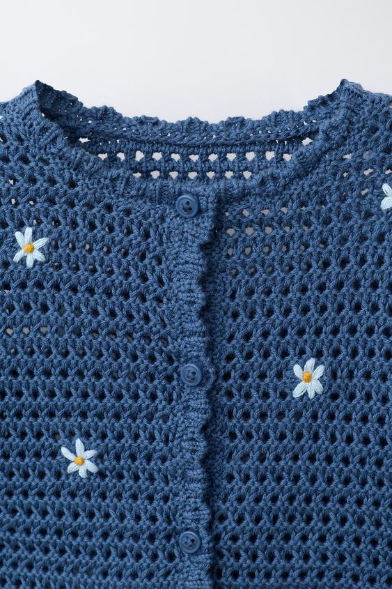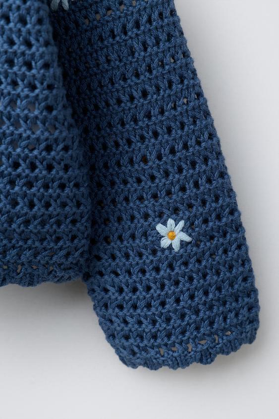 ZARA ВЯЗАНЫЙ КАРДИГАН С ВЫШИВКОЙ В ВИДЕ ЦВЕТОВ, СИНИЙ