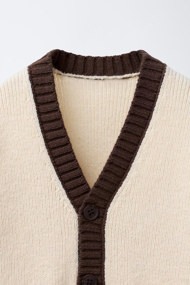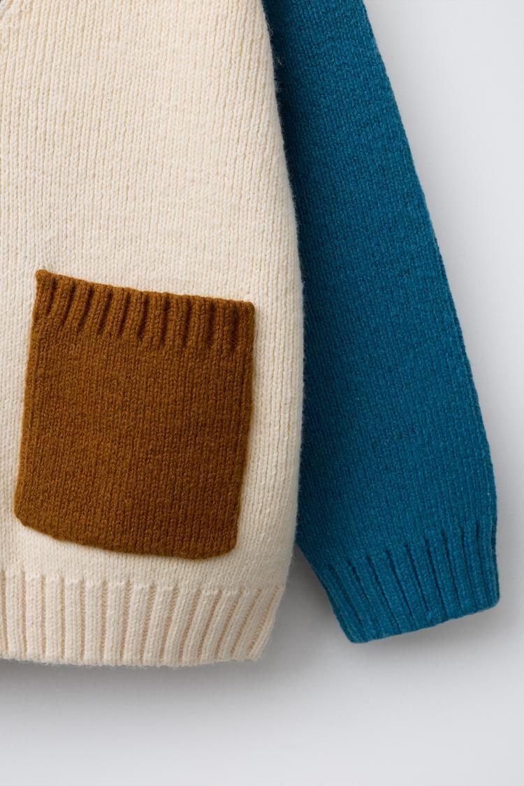 ZARA ВЯЗАНЫЙ КАРДИГАН В СТИЛЕ COLOR BLOCK, ЭКРЮ