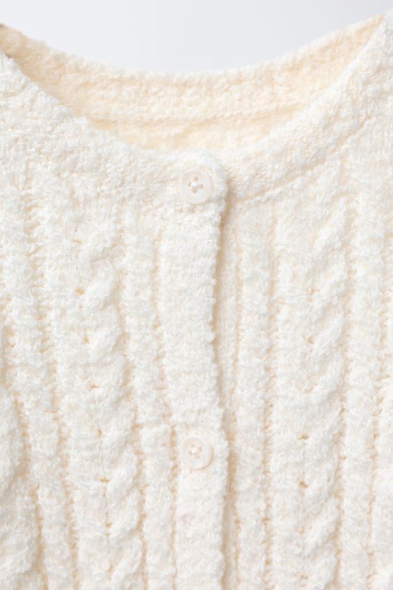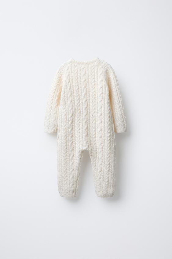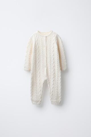 ZARA ВЯЗАНЫЙ КОМБИНЕЗОН С УЗОРОМ «КОСЫ», ЭКРЮ