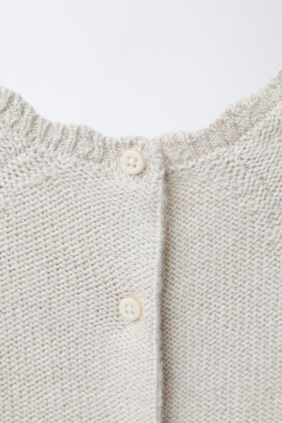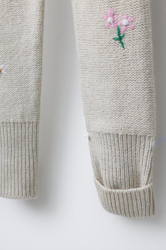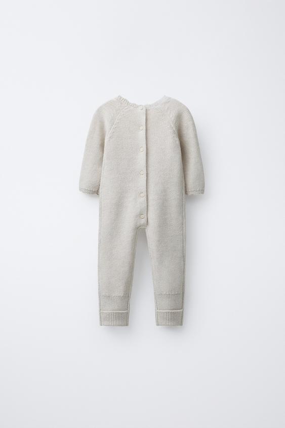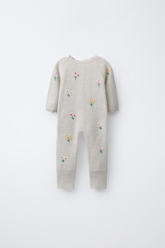 ZARA ВЯЗАНЫЙ КОМБИНЕЗОН С ВЫШИВКОЙ ЦВЕТОВ, СВЕТЛО-БЕЖЕВЫЙ
