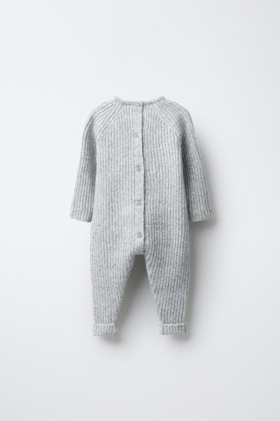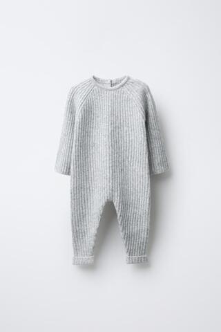 ZARA ВЯЗАНЫЙ КОМБИНЕЗОН В РУБЧИК, СЕРЫЙ МЕЛАНЖ