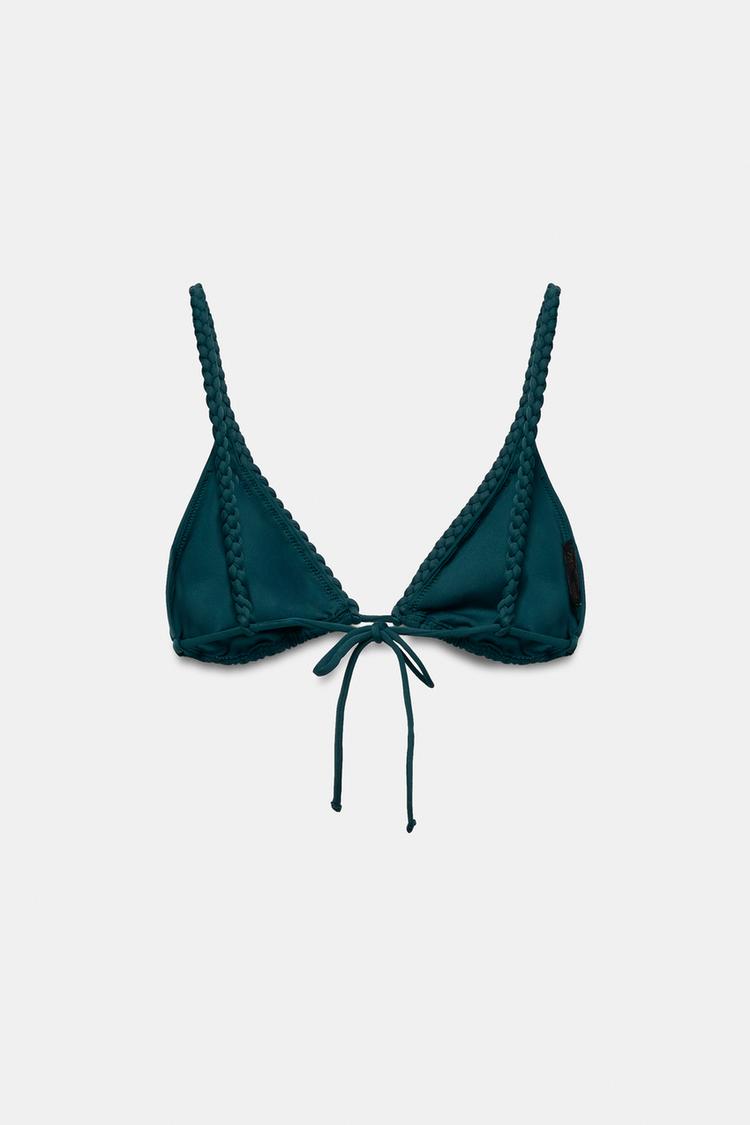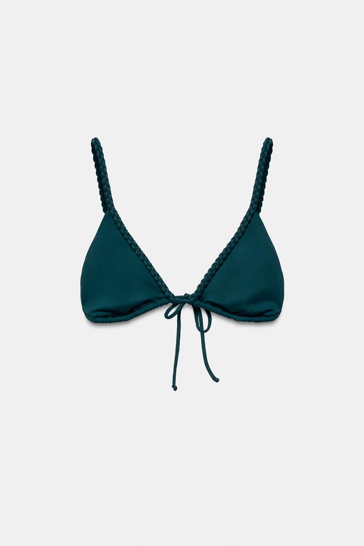 ZARA ВЯЗАНЫЙ ЛИФ БИКИНИ С ТРЕУГОЛЬНЫМИ ЧАШКАМИ, ЗЕЛЕНЫЙ