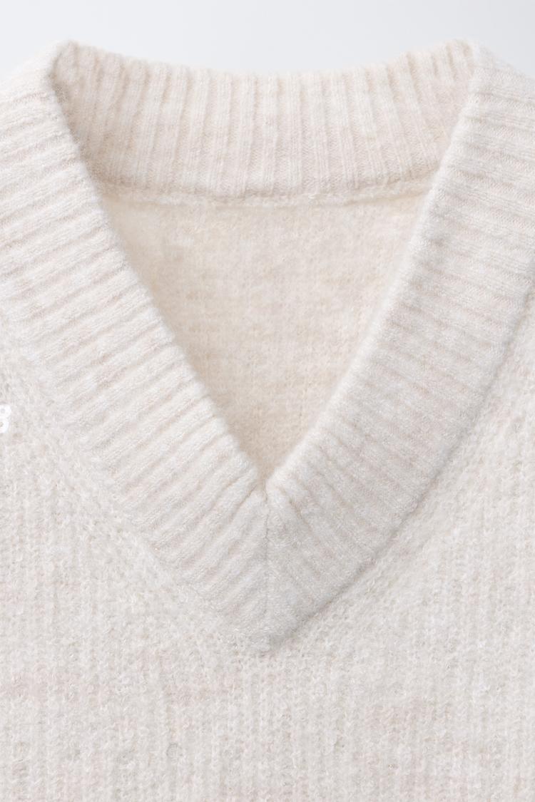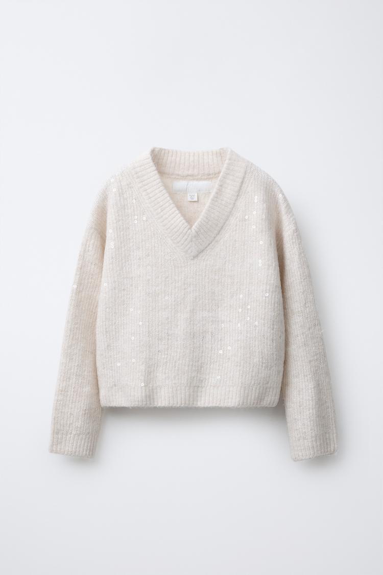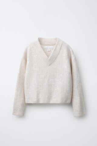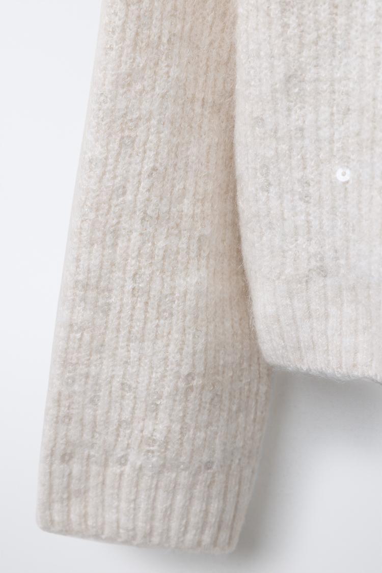 ZARA ВЯЗАНЫЙ СВИТЕР С ПАЙЕТКАМИ, ЭКРЮ