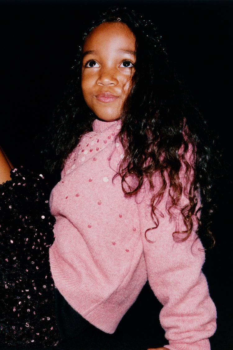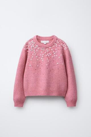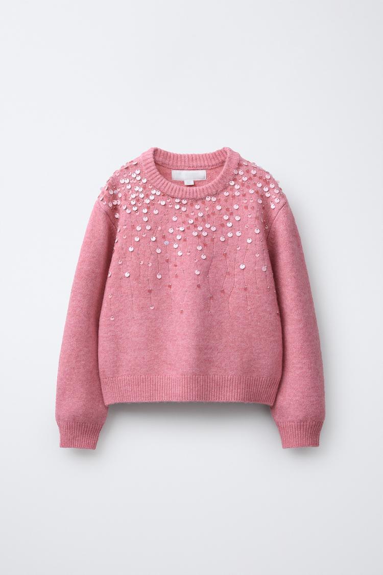 ZARA ВЯЗАНЫЙ СВИТЕР С ПАЙЕТКАМИ, РОЗОВЫЙ
