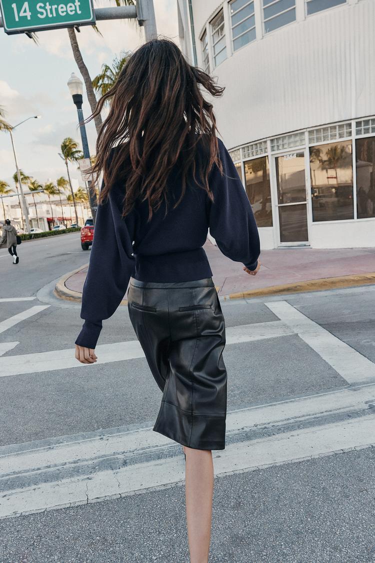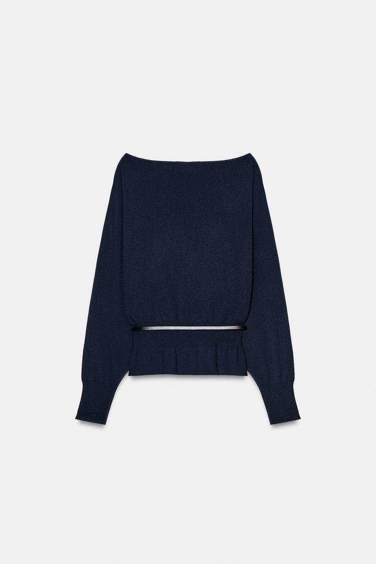 ZARA ВЯЗАНЫЙ СВИТЕР С ПОЯСОМ, МОРСКОЙ СИНИЙ