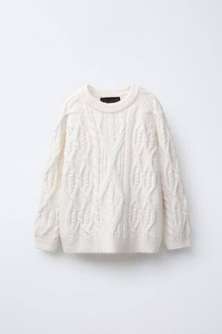 ZARA ВЯЗАНЫЙ СВИТЕР С УЗОРОМ «КОСЫ», ЭКРЮ