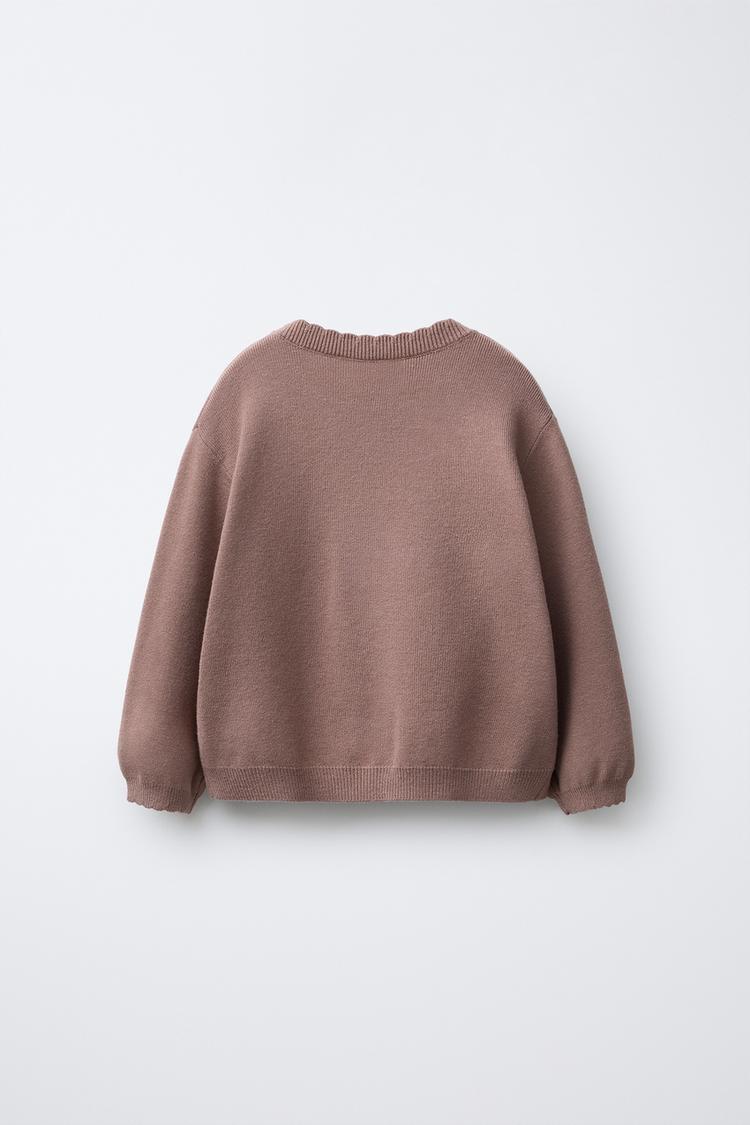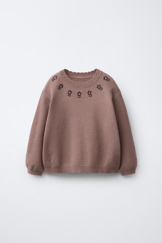 ZARA ВЯЗАНЫЙ СВИТЕР С ВЫШИТЫМИ ЦВЕТАМИ, ПУДРОВО-РОЗОВЫЙ