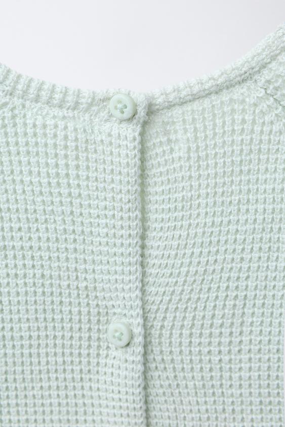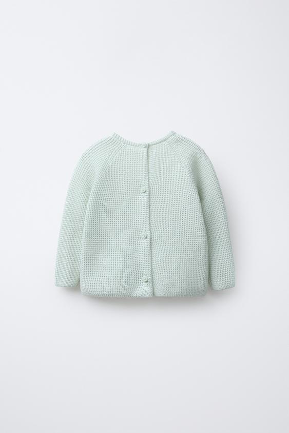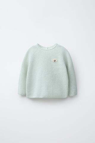 ZARA ВЯЗАНЫЙ СВИТЕР С ВЫШИВКОЙ СОБАКИ, ВОДЯНИСТО-ГОЛУБОЙ