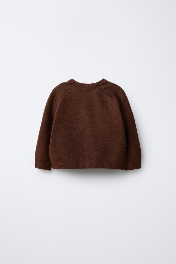ZARA ВЯЗАНЫЙ СВИТЕР С ВЫШИВКОЙ В ВИДЕ УТЕНКА, КОРИЧНЕВЫЙ