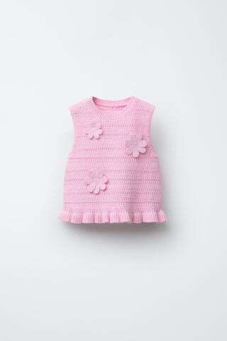 ZARA ВЯЗАНЫЙ ТОП С ЦВЕТОЧНЫМ УЗОРОМ, РОЗОВЫЙ
